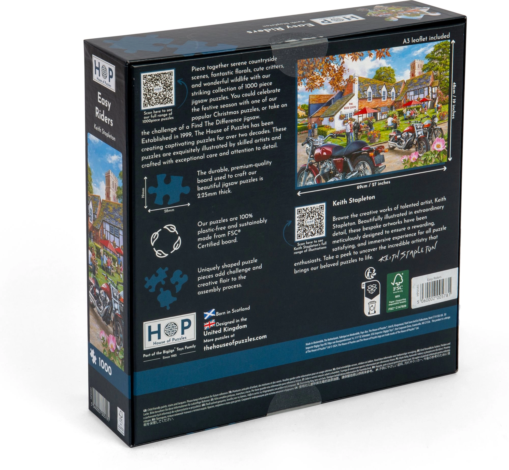 El puzzle terminado tiene unas dimensiones de aprox. 69 x 48 cm, lo que ofrece una amplia superficie para detalles, muy apreciados en esta categoría de puzzles. Es ideal para relajarse, divertirse y compartir momentos en familia o con amigos.
