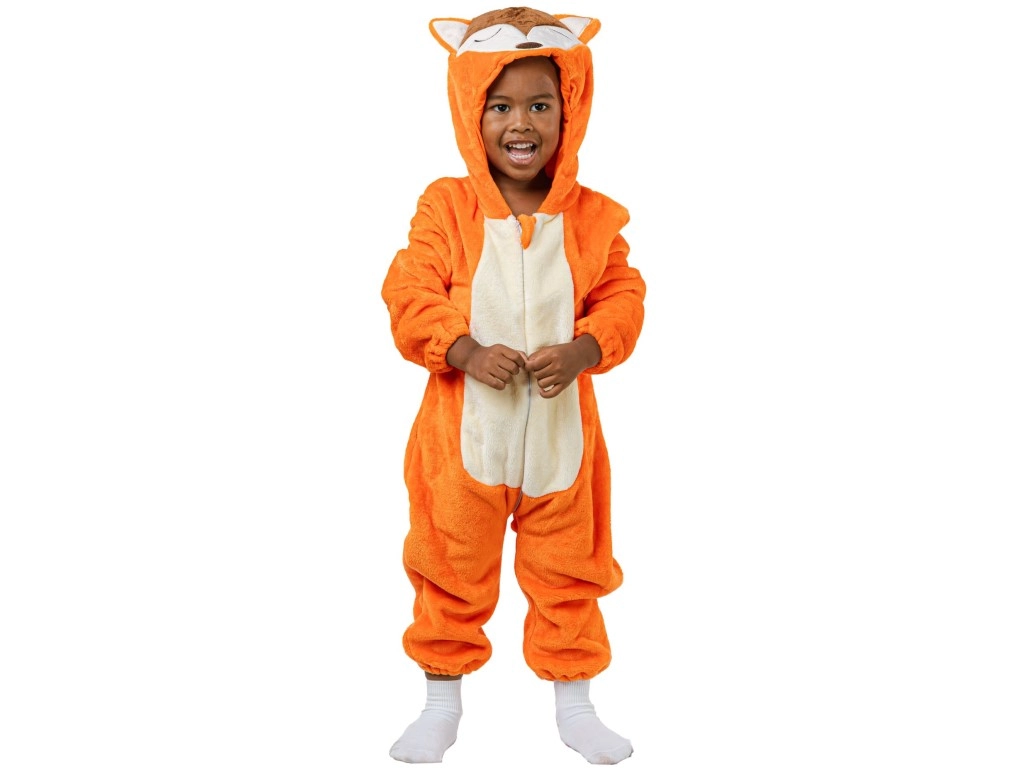 Este disfraz de zorro es perfecto para cualquier evento de carnaval o fiesta infantil. Fabricado en poliéster suave y cómodo, ofrece libertad de movimiento y confort. Las tallas de 92 a 104 cm son adecuadas para niños de 3 a 4 años.