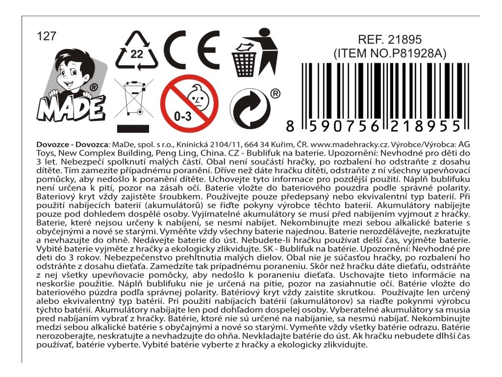 Esta máquina de burbujas es un gran complemento para el juego diario. Gracias a sus dimensiones compactas de 11 x 5 x 12,5 cm, es fácil de guardar y llevar a cualquier parte. Fabricada en plástico de alta calidad, garantiza diversión duradera.