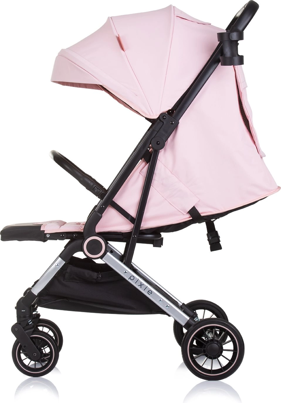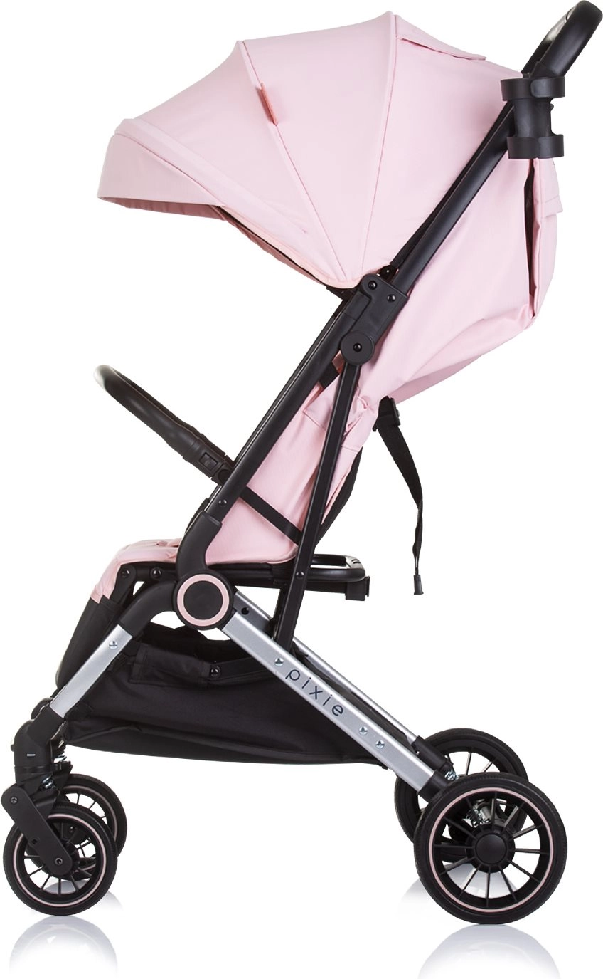El cochecito Pixie de la marca Chipolino está diseñado con énfasis en la comodidad y seguridad del niño. Está equipado con un chasis ligero, por lo que su manejo es muy sencillo. Con una sola mano se pliega de forma fácil y compacta, y gracias al asa extensible se puede transportar como una maleta.