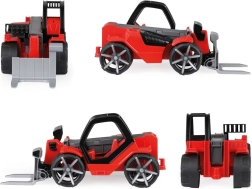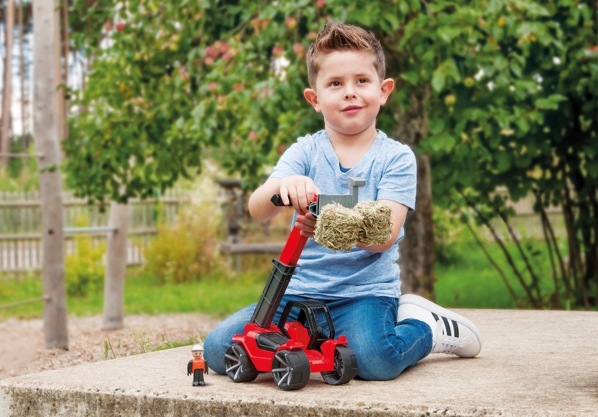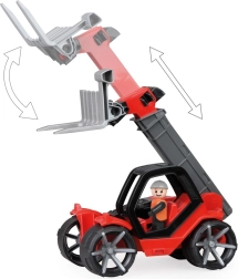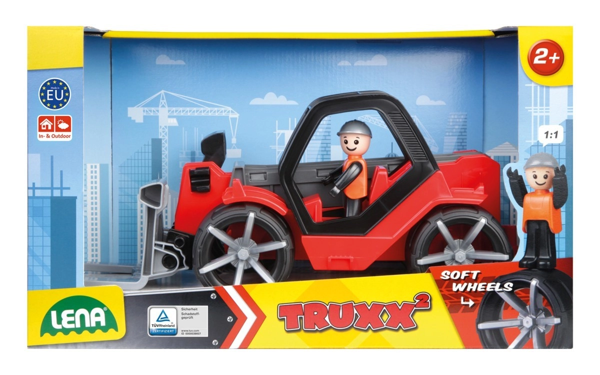 El cargador telescópico Truxx2 está fabricado con plástico de alta calidad y cuenta con una estructura muy resistente. Incluye una cabina desmontable con figura y ruedas engomadas para un funcionamiento silencioso.