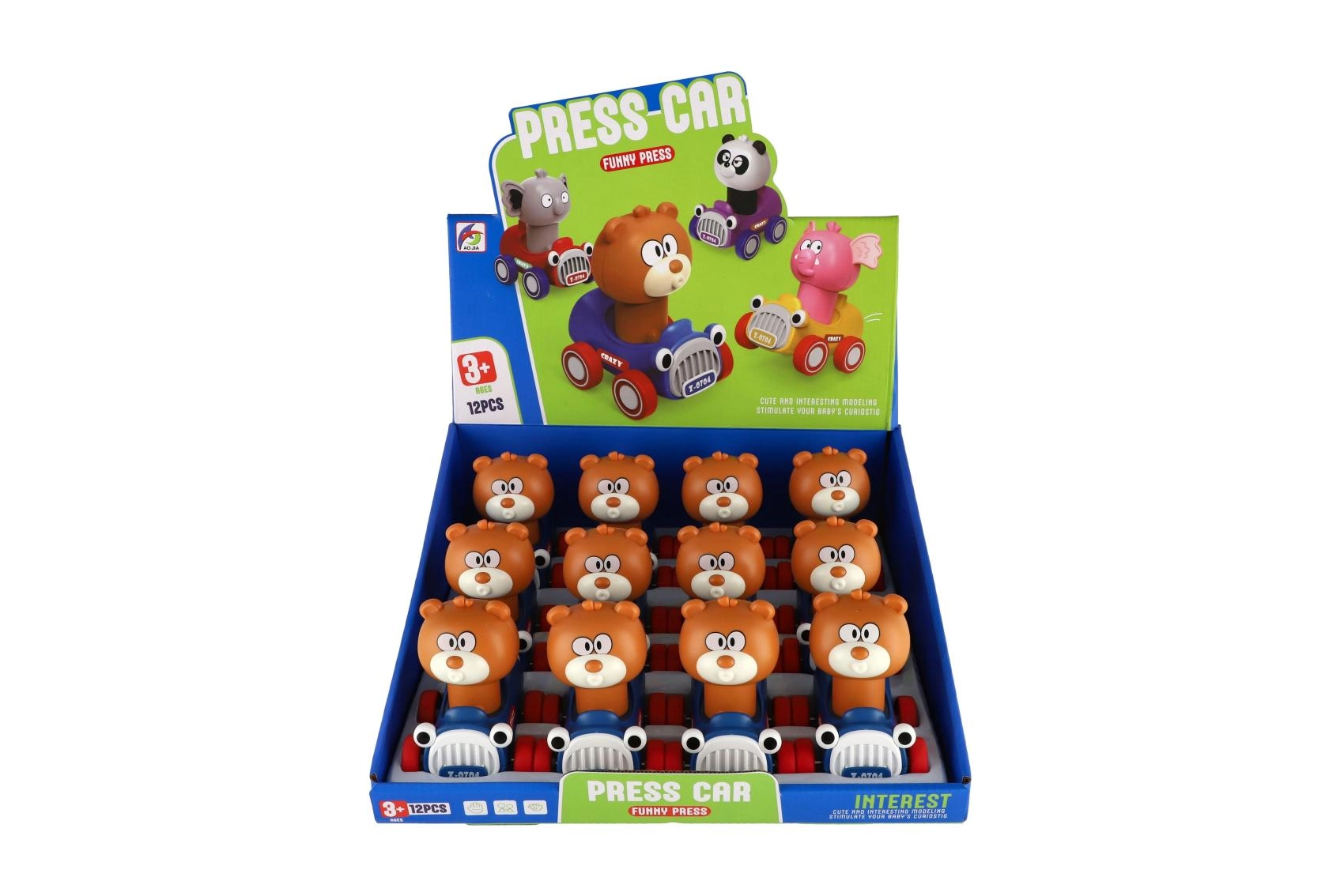 Adorable osito de plástico «Aprieta y corre» equipado con mecanismo de inercia. Solo hay que apretarlo, soltar y ver cómo el osito sale hacia adelante. Perfecto para los más pequeños, desarrolla el movimiento y aporta alegría al moverse.