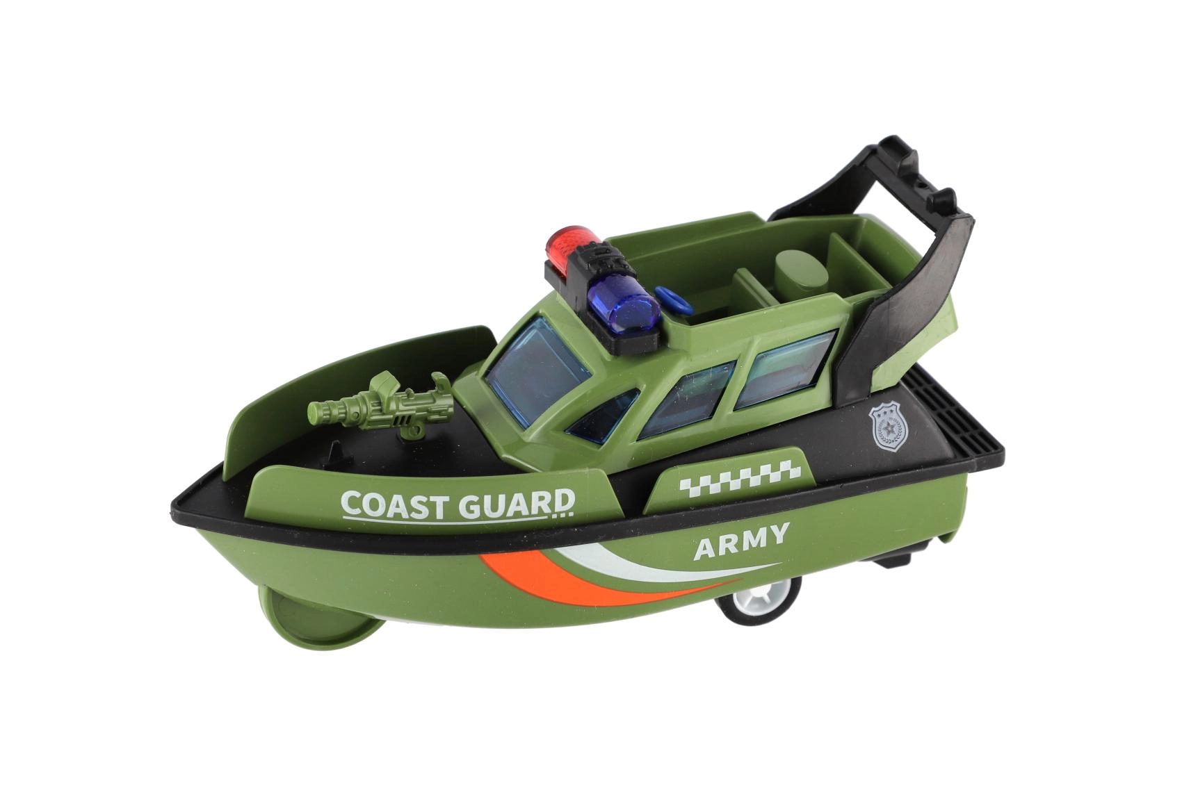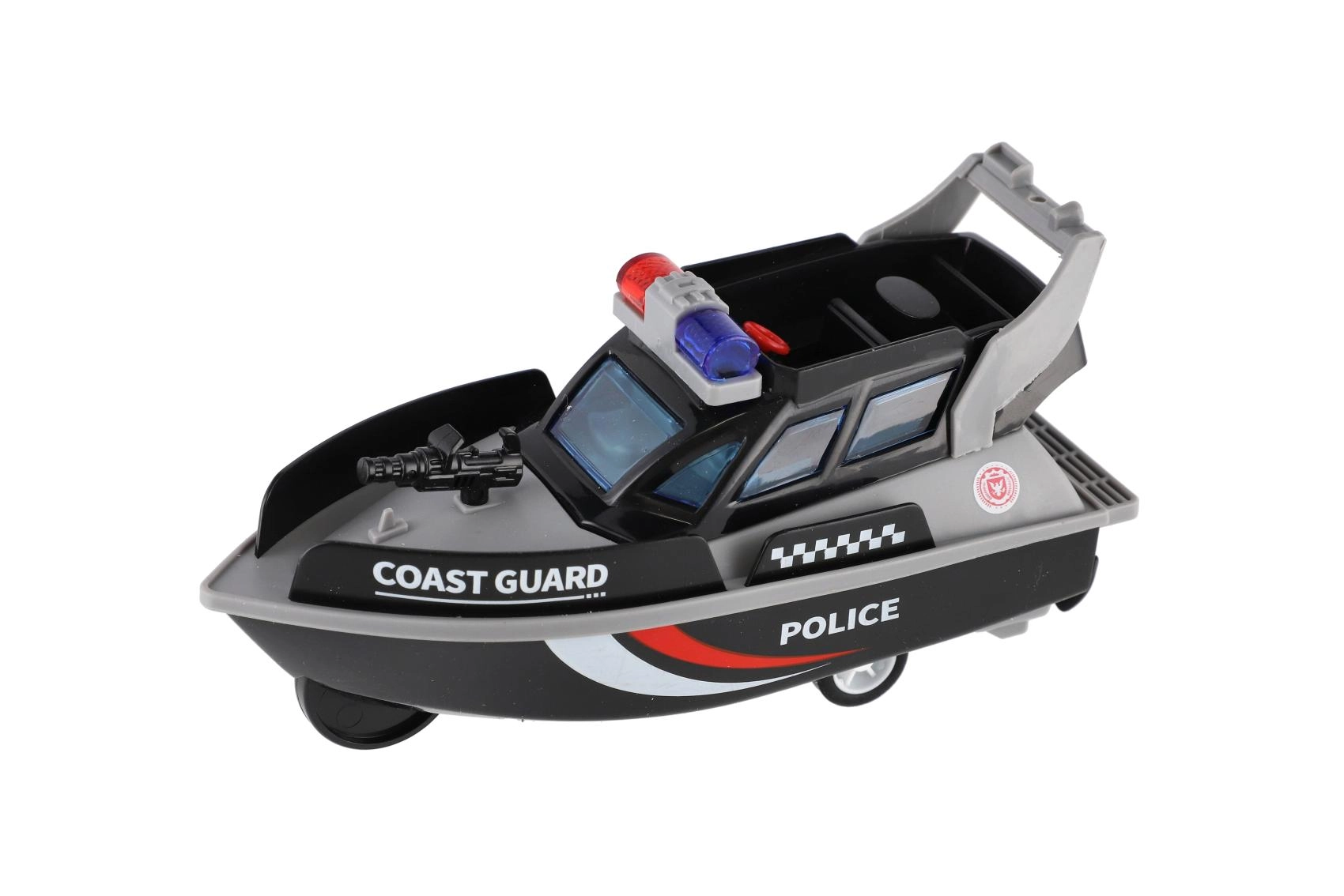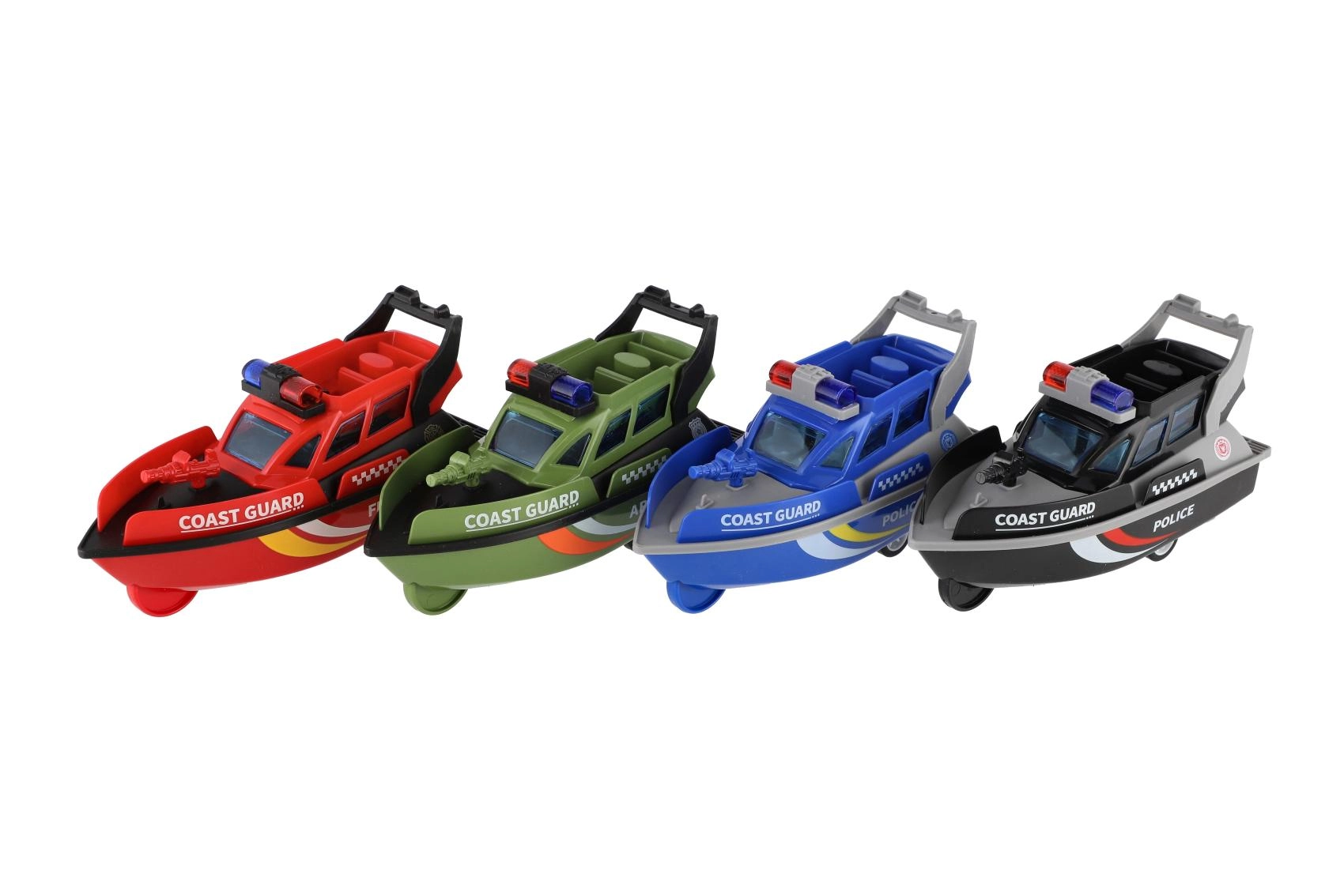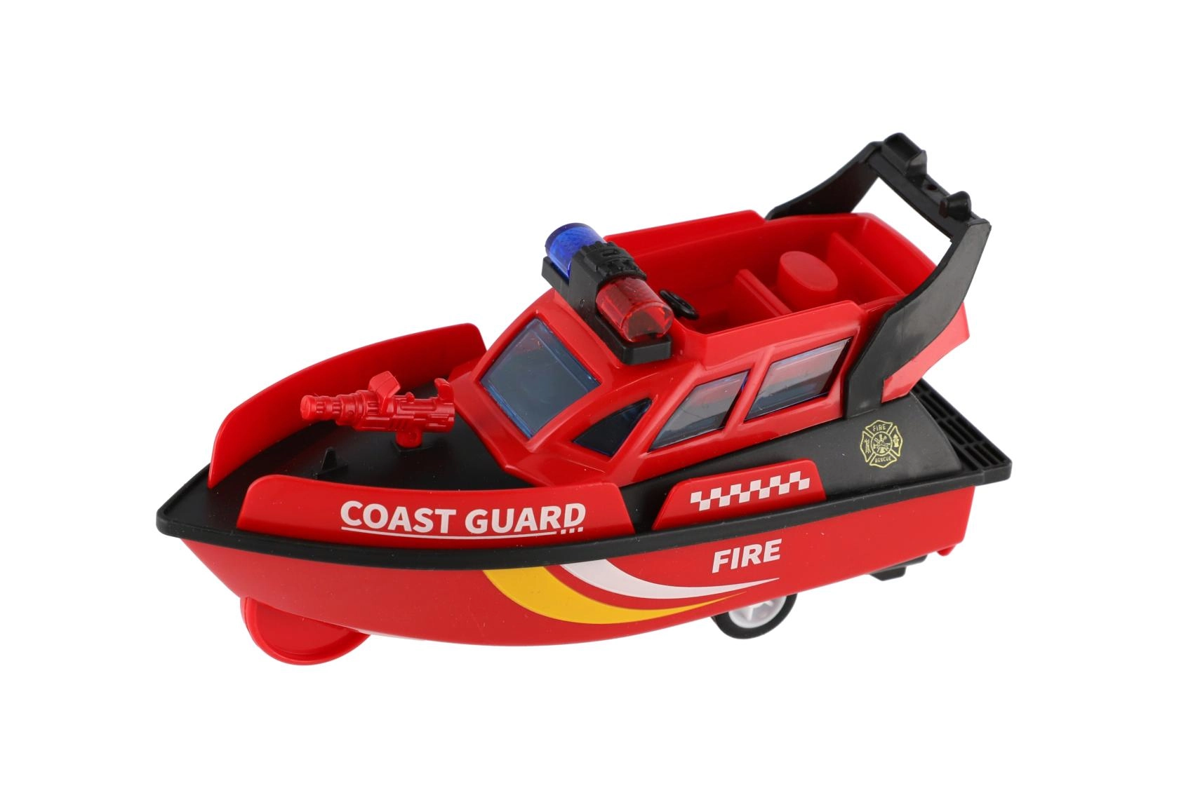 ¡Zarpa hacia la aventura con esta lancha de rescate de plástico de alta calidad! El modelo de 14 cm está diseñado para avanzar al ser impulsado por su mecanismo de inercia sin necesidad de baterías.