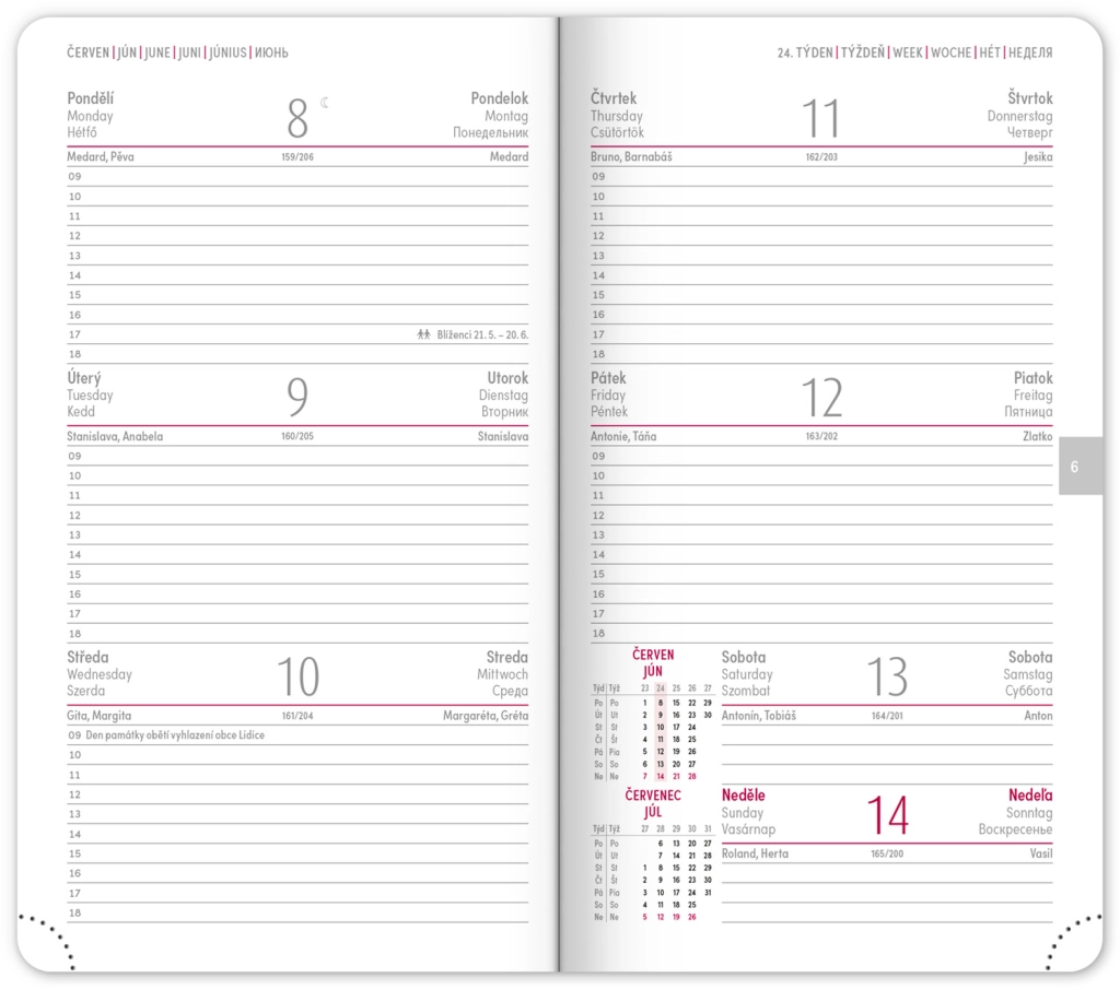 - Calendario checo-eslovaco complementado con inglés, alemán, húngaro y ruso.
