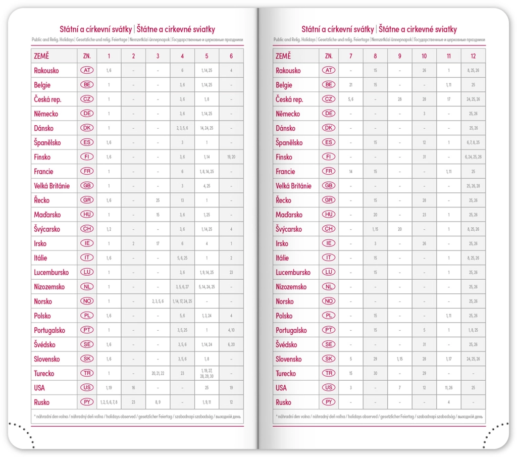 - Resumen de festivos para Chequia, Eslovaquia y festivos internacionales.