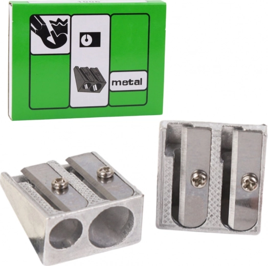 Sacapuntas metálico robusto ideal para uso escolar y de oficina. Gracias a la doble abertura, puede afilar tanto lápices finos como más gruesos y lápices de colores.