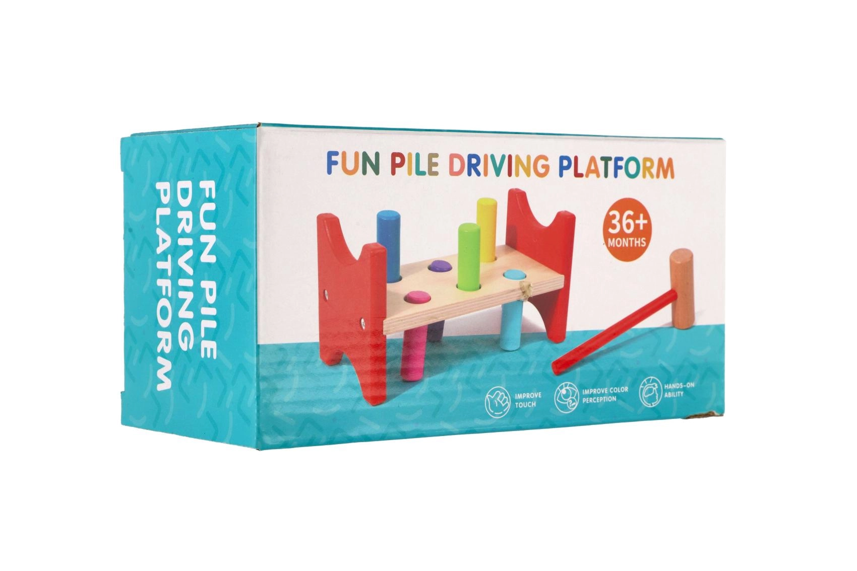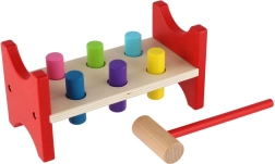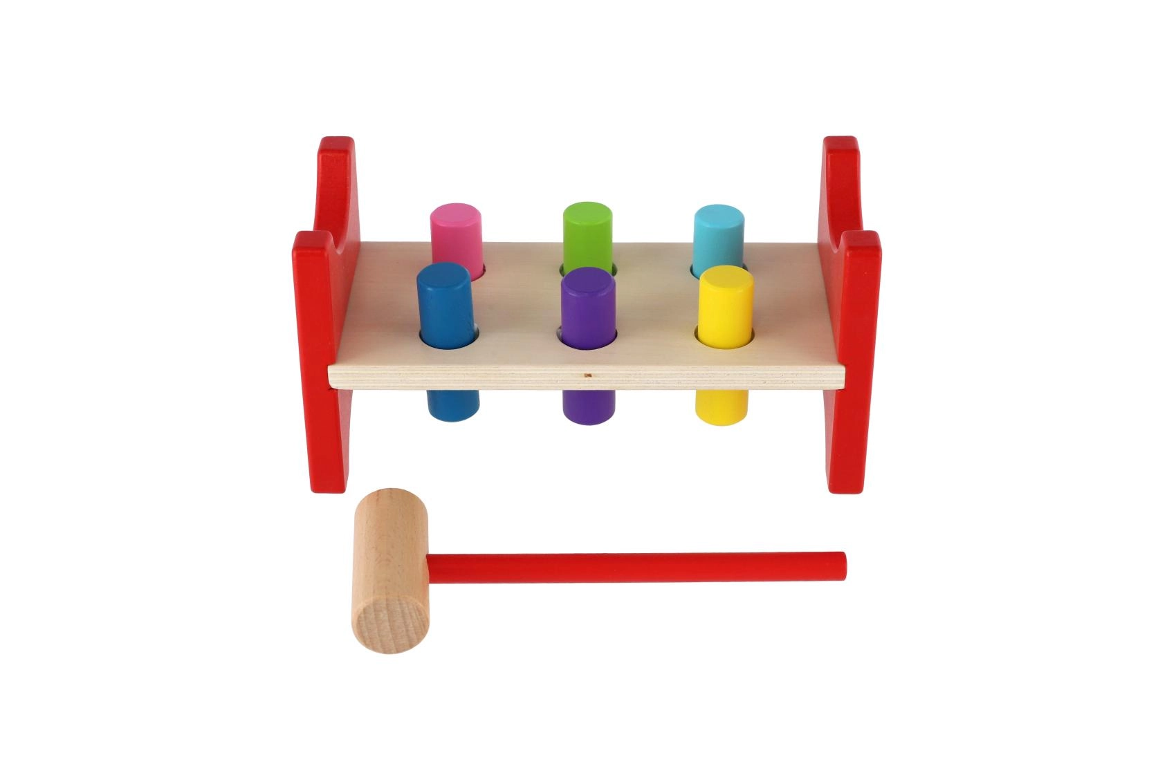 Este juguete de madera atemporal favorece el aprendizaje natural a través del juego. Los niños utilizan el martillo para golpear las clavijas de colores en los orificios, entrenando así la precisión del movimiento, el ritmo y la paciencia. El banco de madera robusto, combinado con bordes redondeados seguros, garantiza una larga vida útil y un uso seguro.
