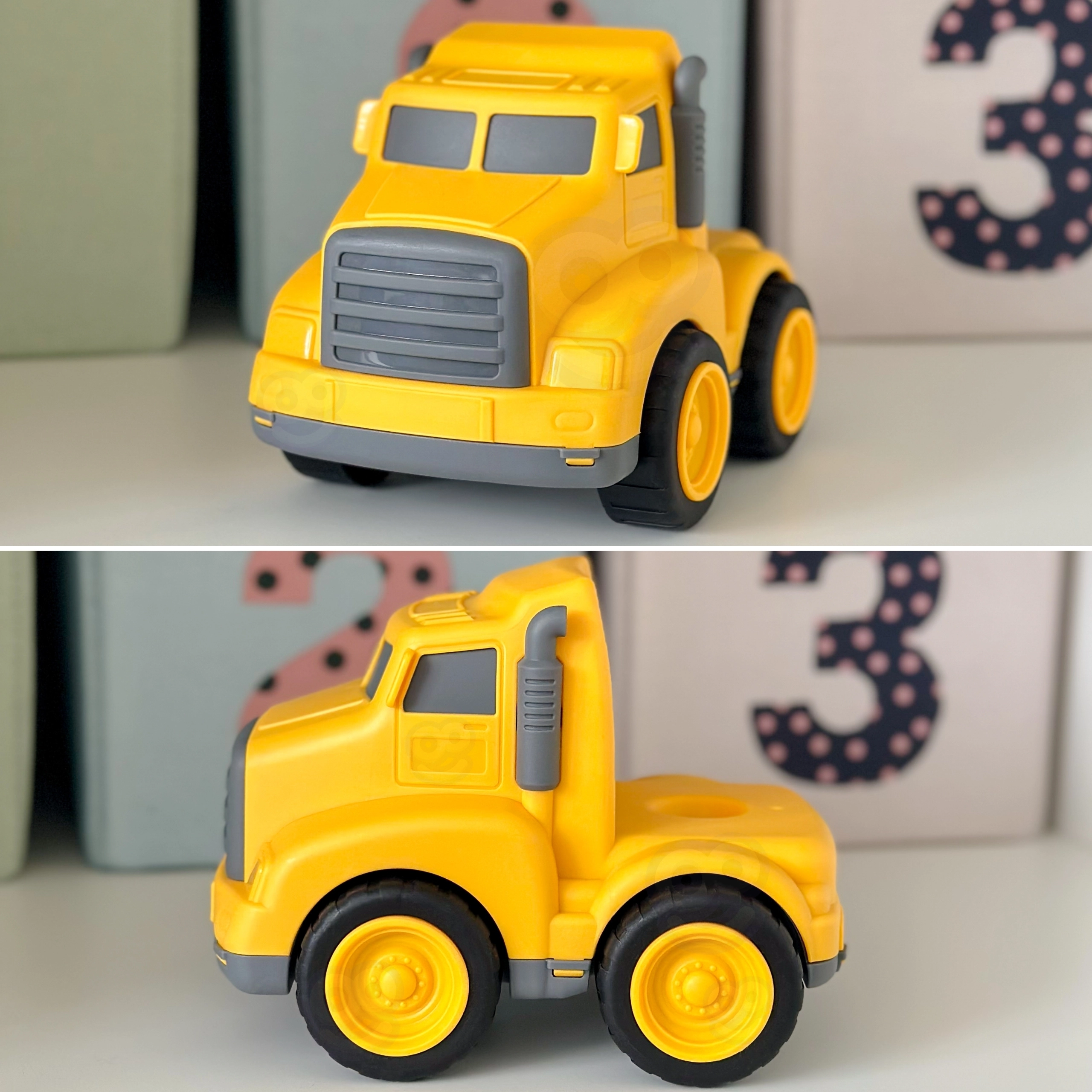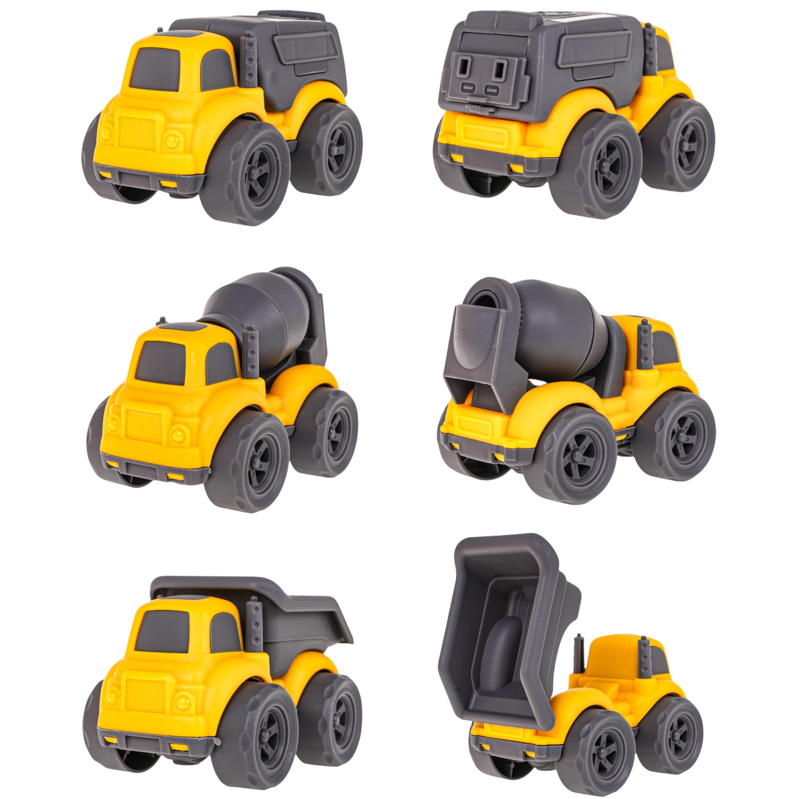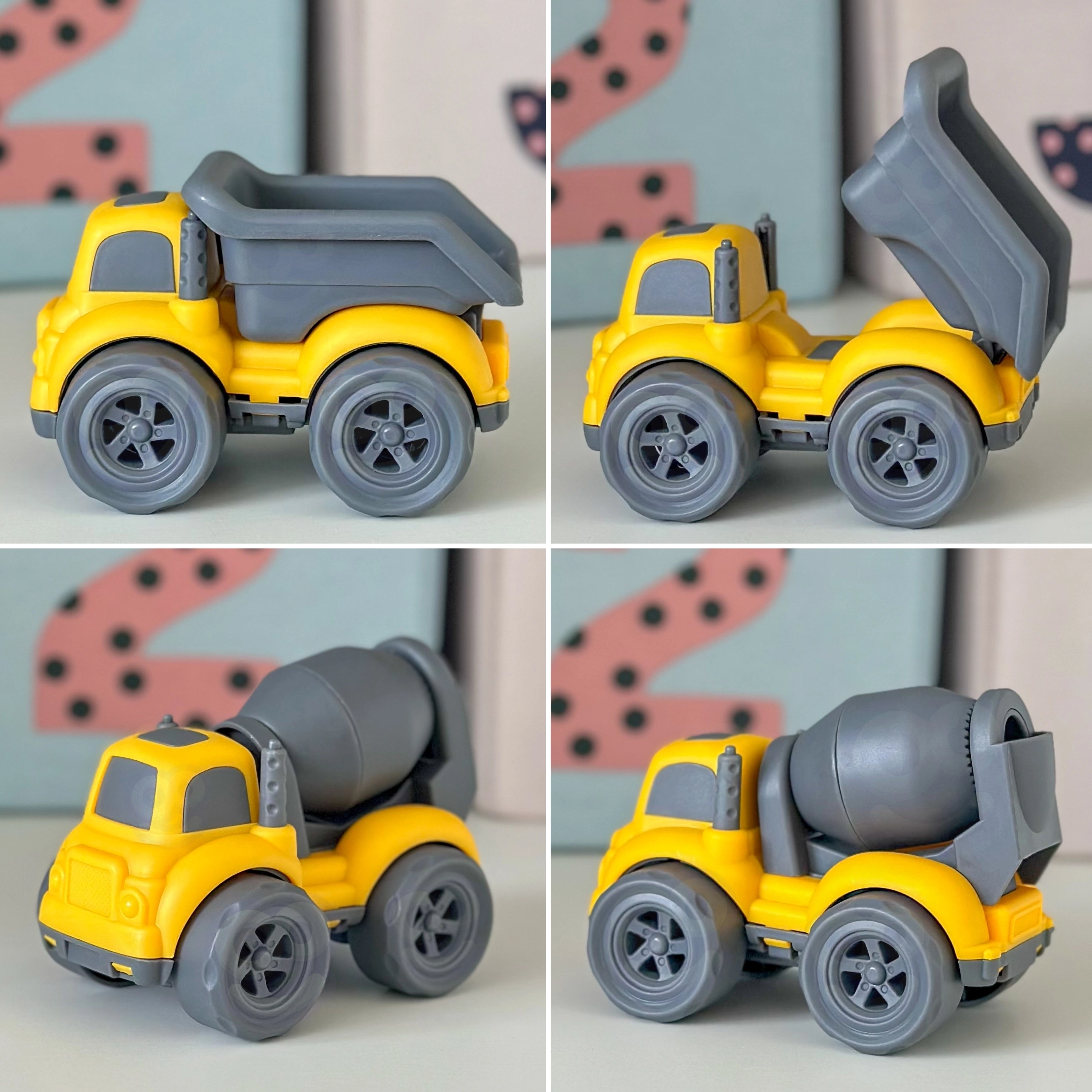 El plástico seguro y robusto, los bordes redondeados y los colores llamativos hacen de este set una elección ideal para jugar a diario en casa y al aire libre. Los niños ejercitan su creatividad, imaginación y coordinación al cargar y descargar los vehículos, transportar cargas o simular trabajos en la obra.