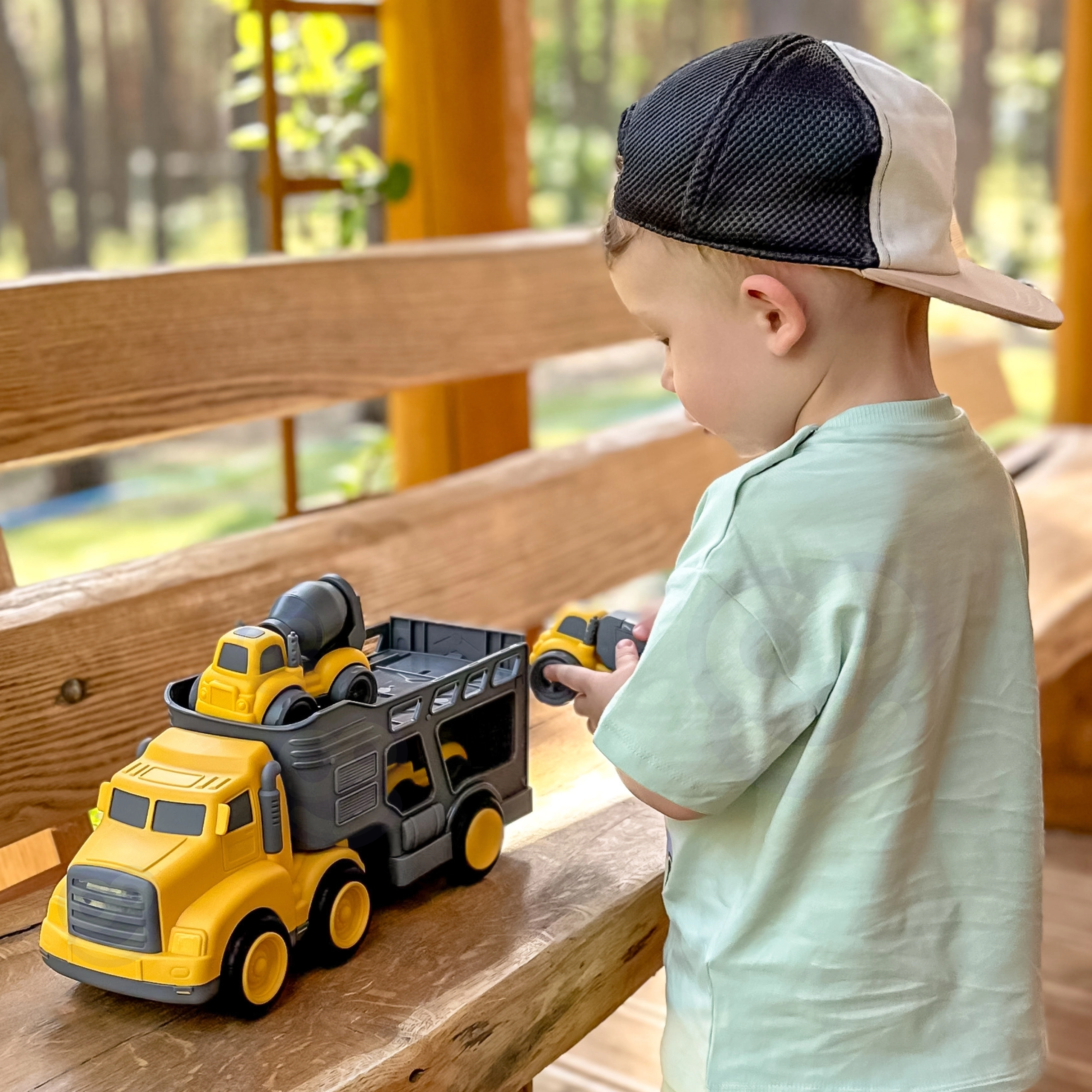 - 4 en 1: gran portador + 3 vehículos de construcción