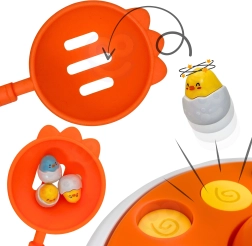 ¡Lanza el pollito y atrápalo con la pala! El elemento de acción aporta diversión dinámica y desarrolla los reflejos y las habilidades motoras.