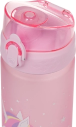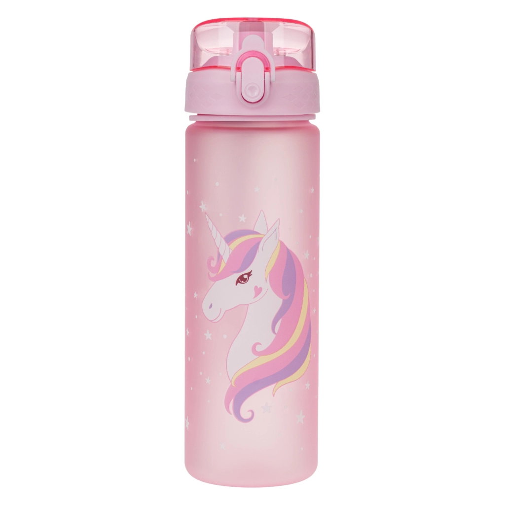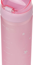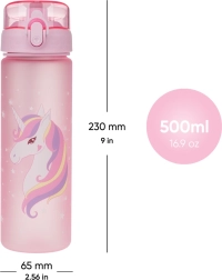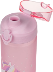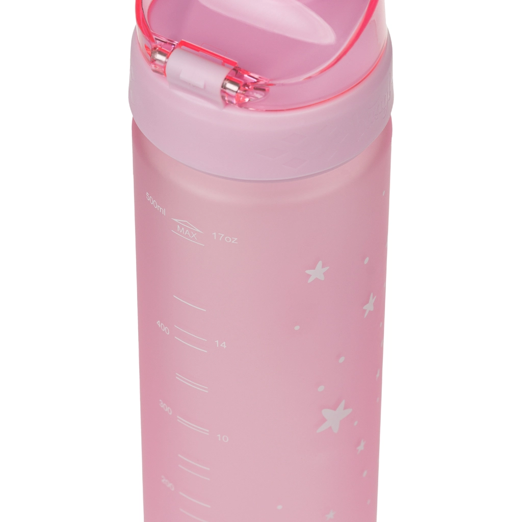 Esta botella de tritán con capacidad de 500 ml es una excelente compañera para escolares y deportistas. Su tapa con cierre garantiza que no se derrame ni una gota y su uso es sencillo e intuitivo. Gracias a su correa, llevarla en la mano es cómodo.