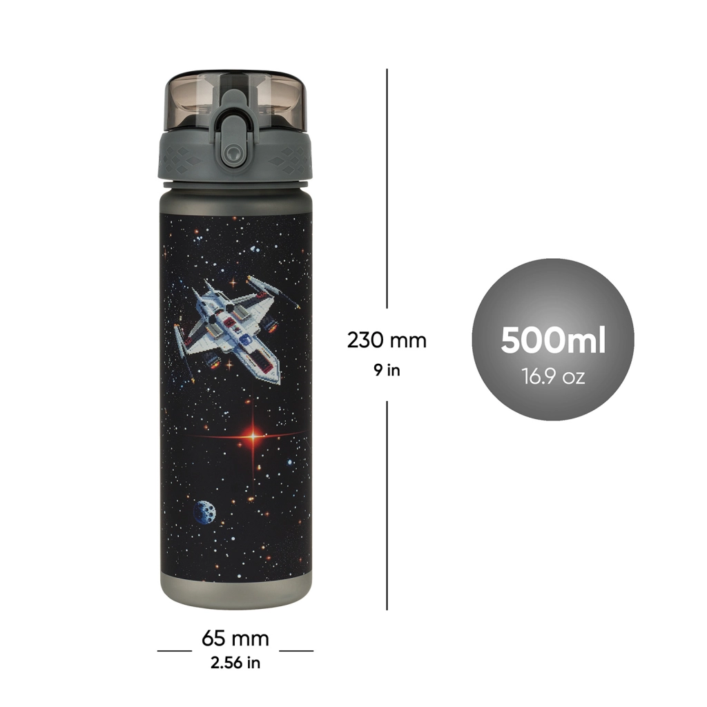 Equipa tu mochila escolar con una práctica y estilosa botella de tritán de BAAGL, ideal no solo para la escuela, sino también para tus excursiones o actividades deportivas. La tapa con bloqueo evita fugas y permite un uso sencillo. El asa para llevarla cómodamente en la mano aumenta el confort durante los desplazamientos.