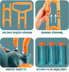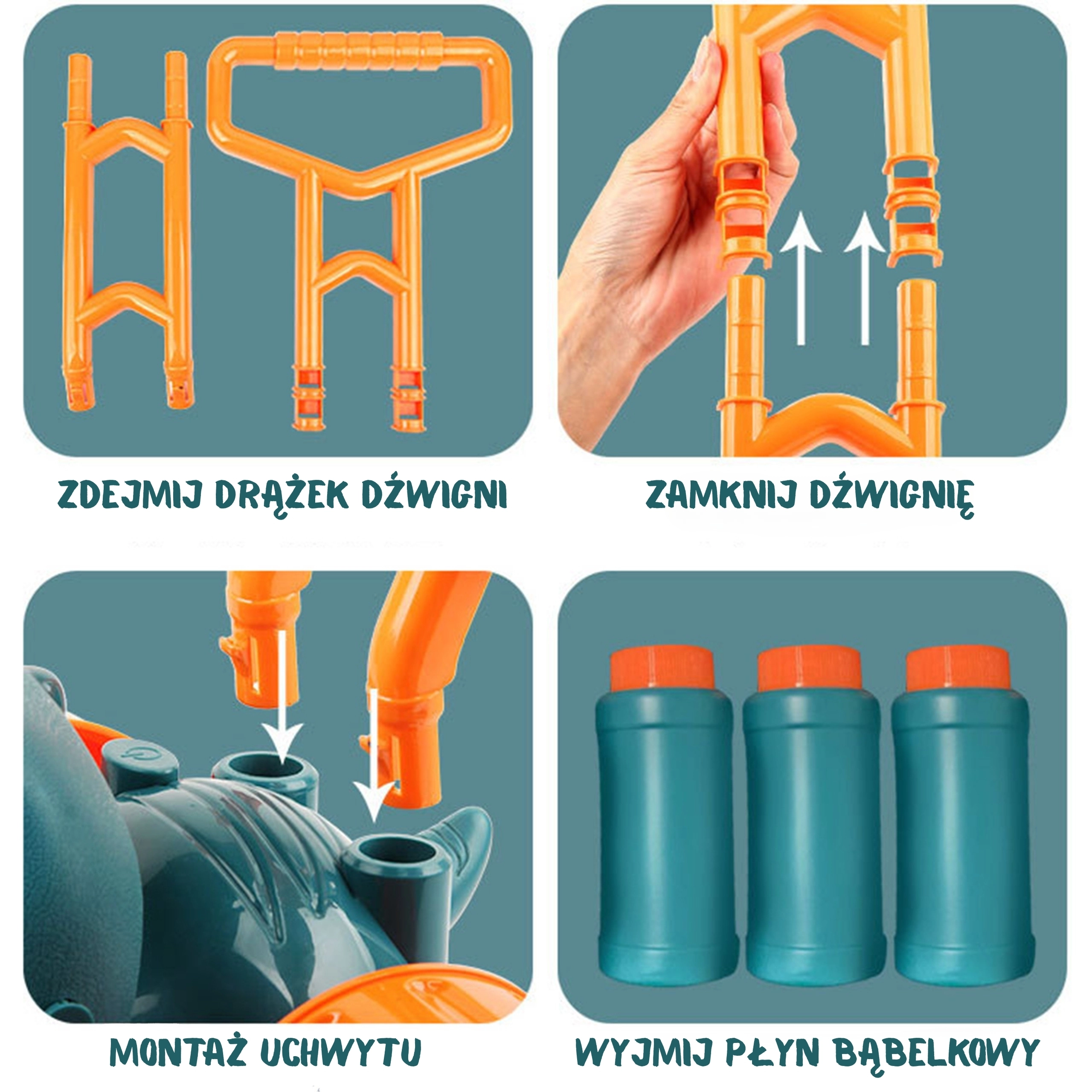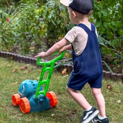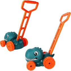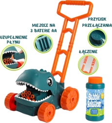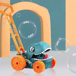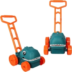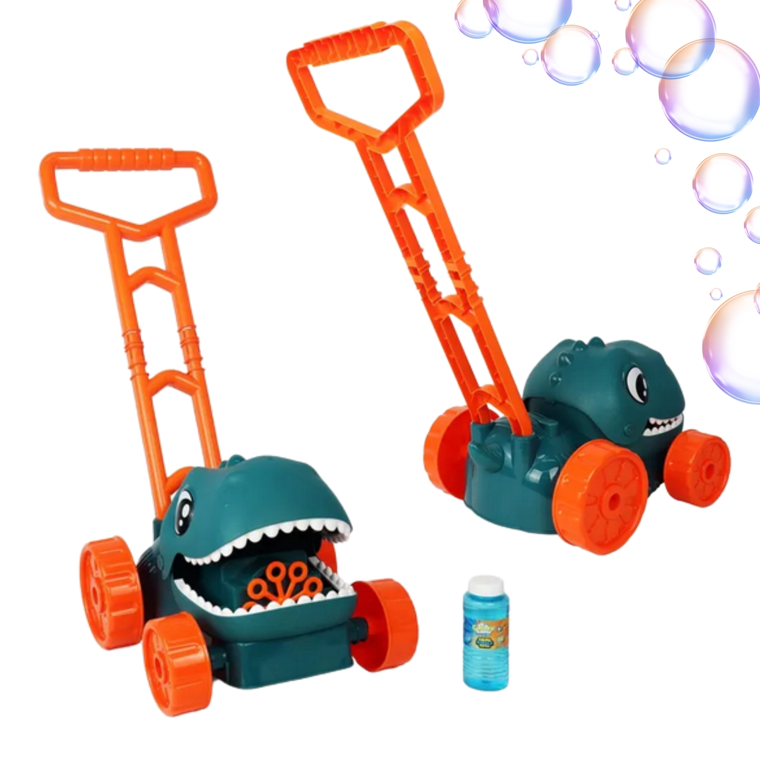 Este colorido cortacésped de dinosaurio invita a los niños a moverse: basta con verter la solución en el depósito, encender y, al empujar, el mecanismo de burbujas se pone en marcha liberando una oleada de burbujas. Sus contornos suaves, la expresión amistosa y las ruedas estables favorecen un juego seguro y alegre tanto en el jardín como en la acera.