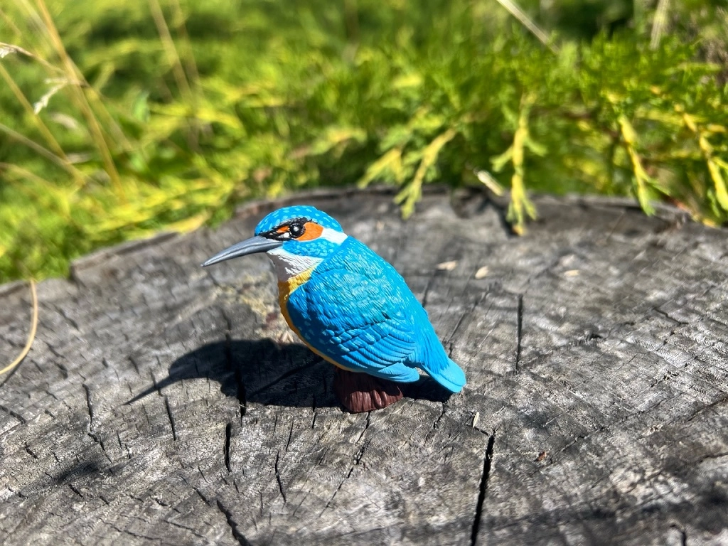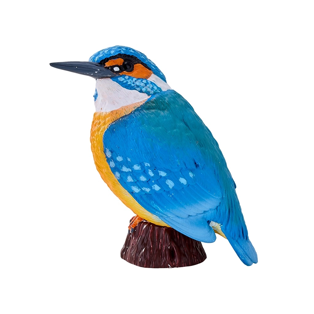 Colores fieles y una textura precisa del plumaje capturan con realismo el aspecto del martín pescador: ideal para educación y coleccionismo.