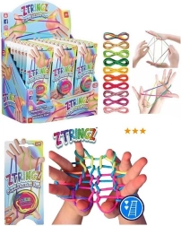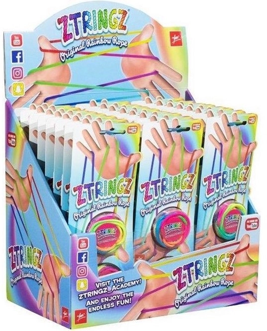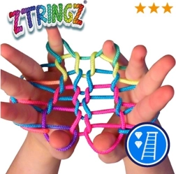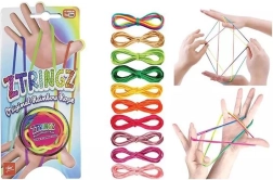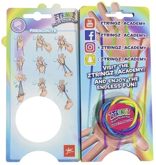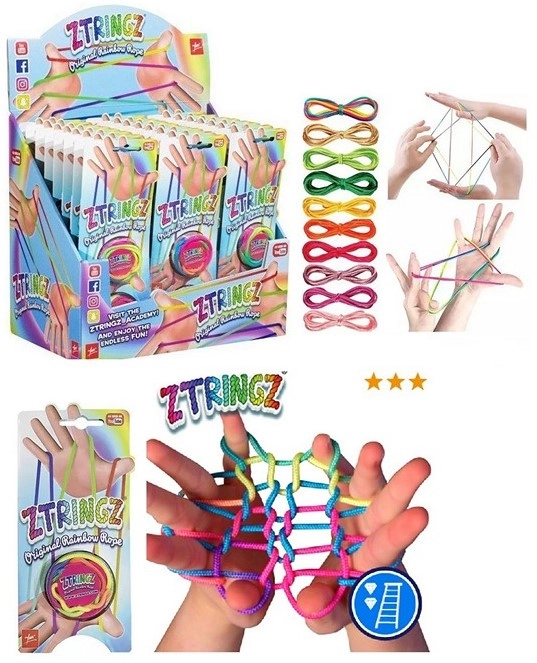Disfruta horas de diversión con el cordón mágico Ztringz. Esta cuerda multicolor permite crear formas y trucos increíbles: desde el paracaídas hasta la hamburguesa.