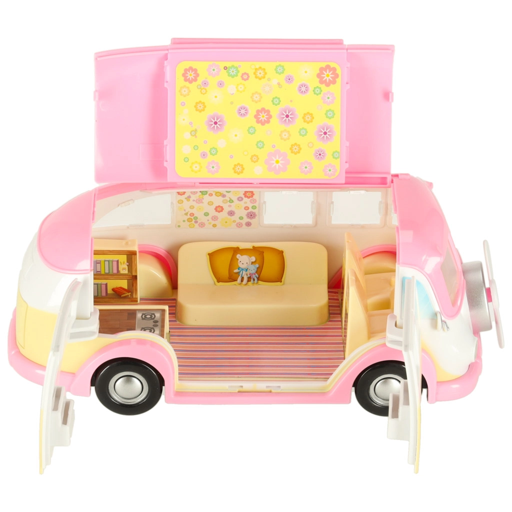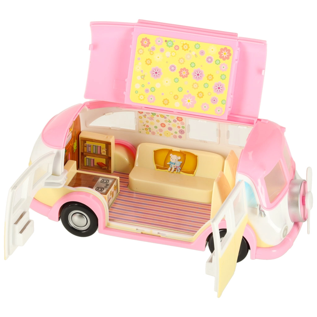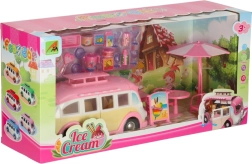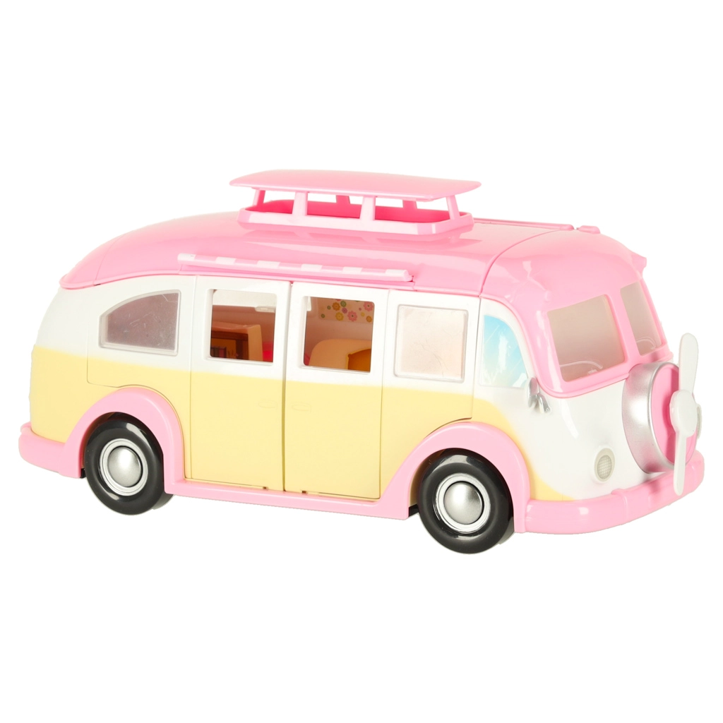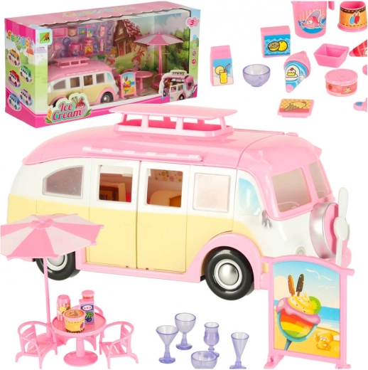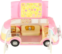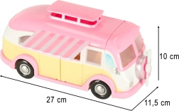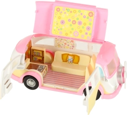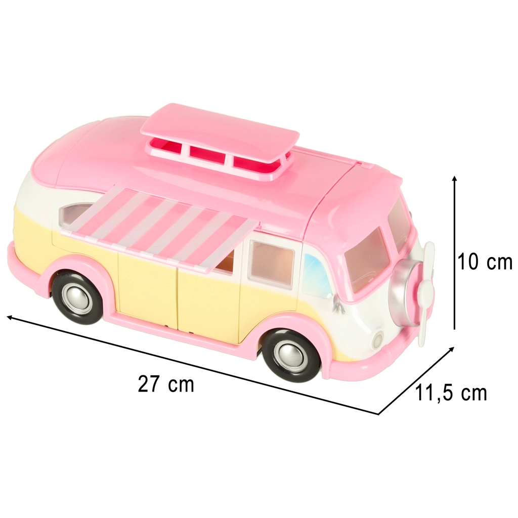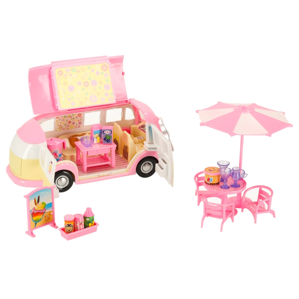 Esta adorable autocaravana de helados en tonos rosa y crema convierte cualquier habitación en un pequeño bistró sobre ruedas. Los niños pueden abrir el techo y las puertas, extender el toldo y atender a los clientes en la mesa con sombrilla. Los detalles realistas del interior fomentan la creatividad y horas de juego.