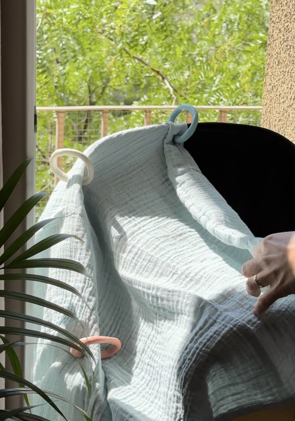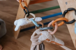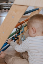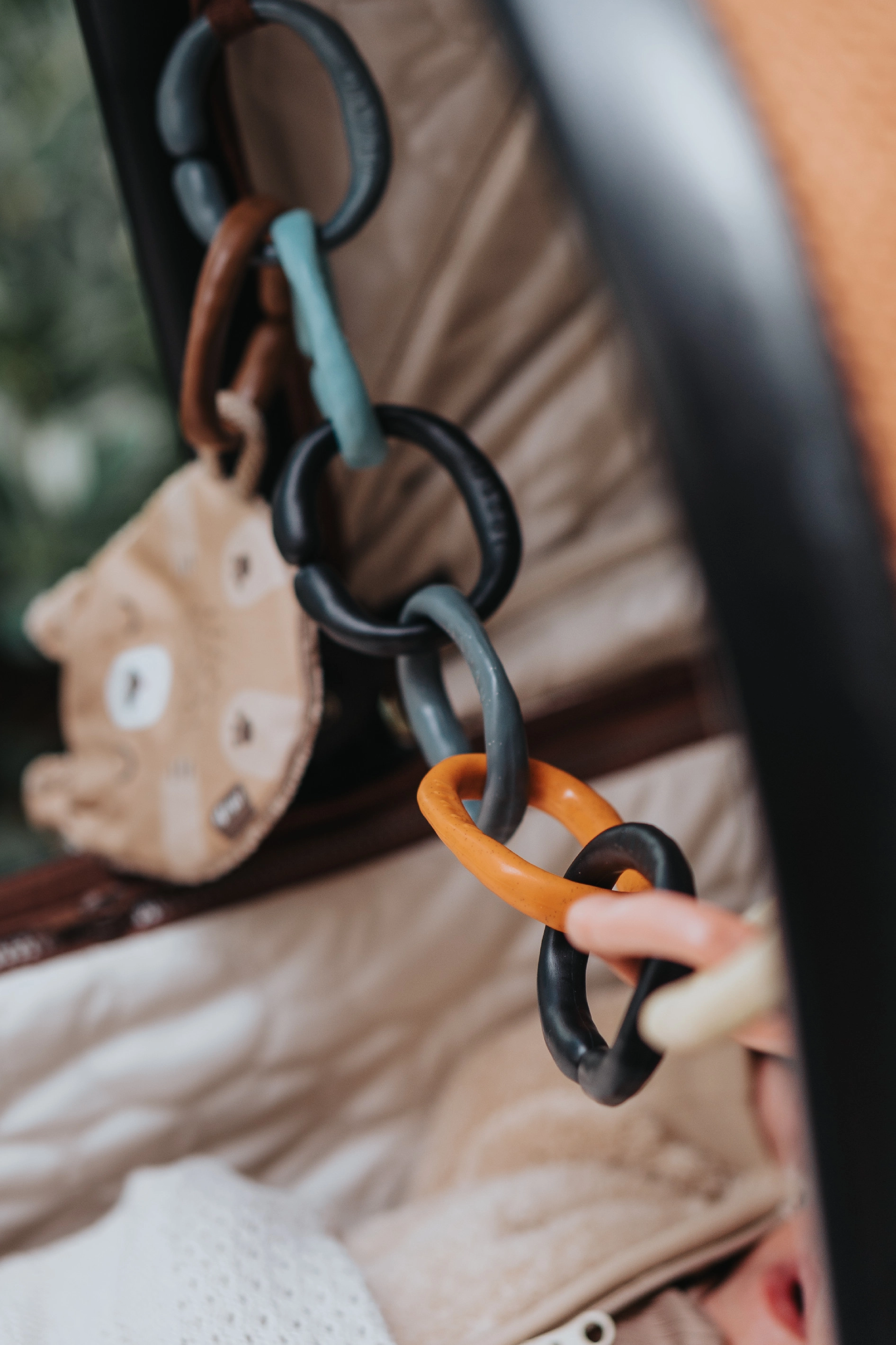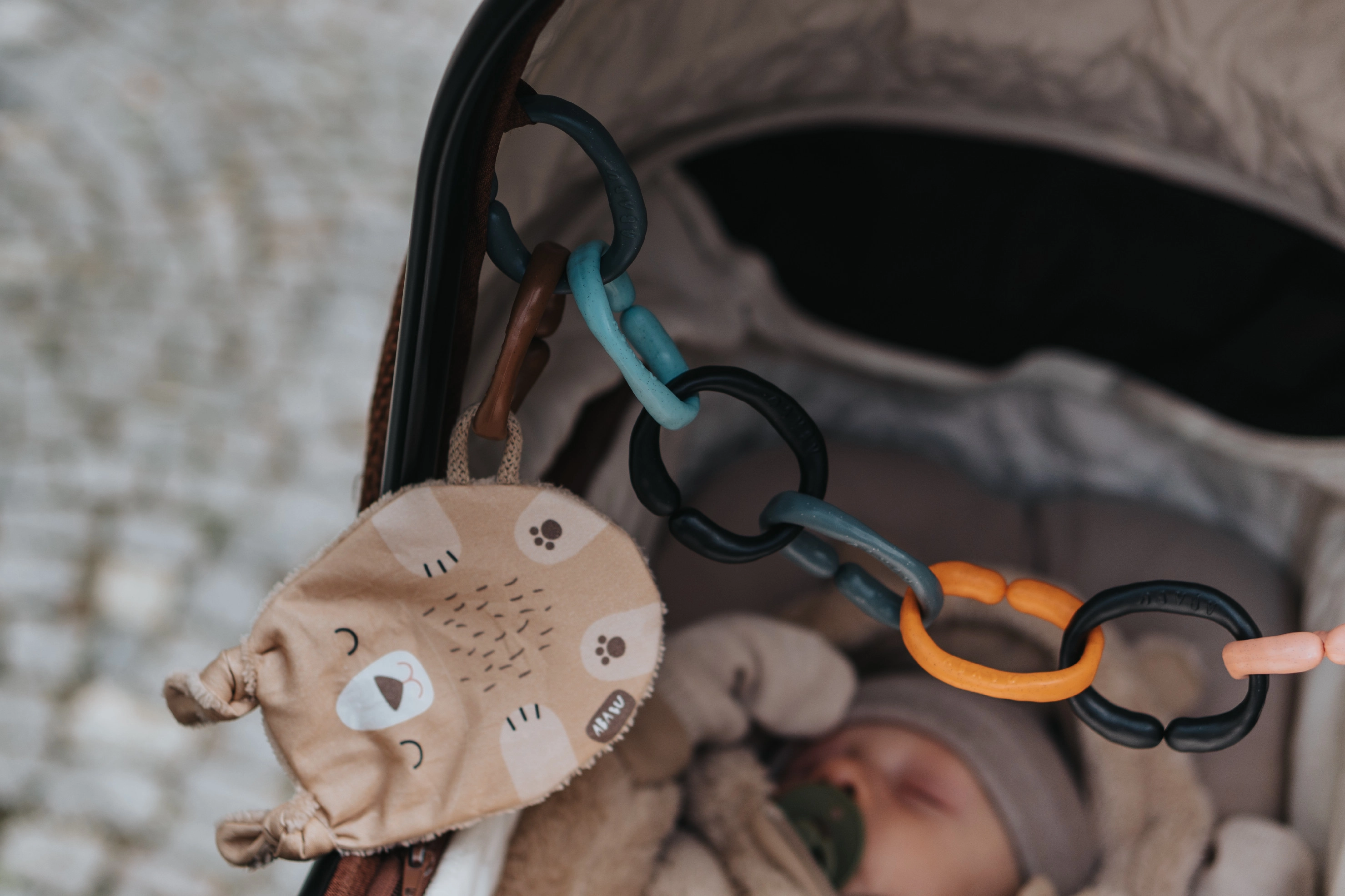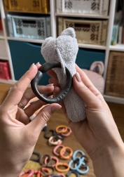 Los anillos de unión OČKO han sido diseñados con énfasis en la seguridad y el uso multifuncional. Permiten fijar fácilmente juguetes, pañales o pequeños objetos al cochecito. Con varios anillos, puedes crear una divertida cadena para jugar y morder.