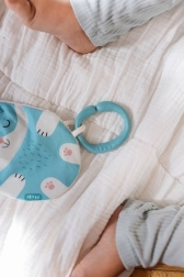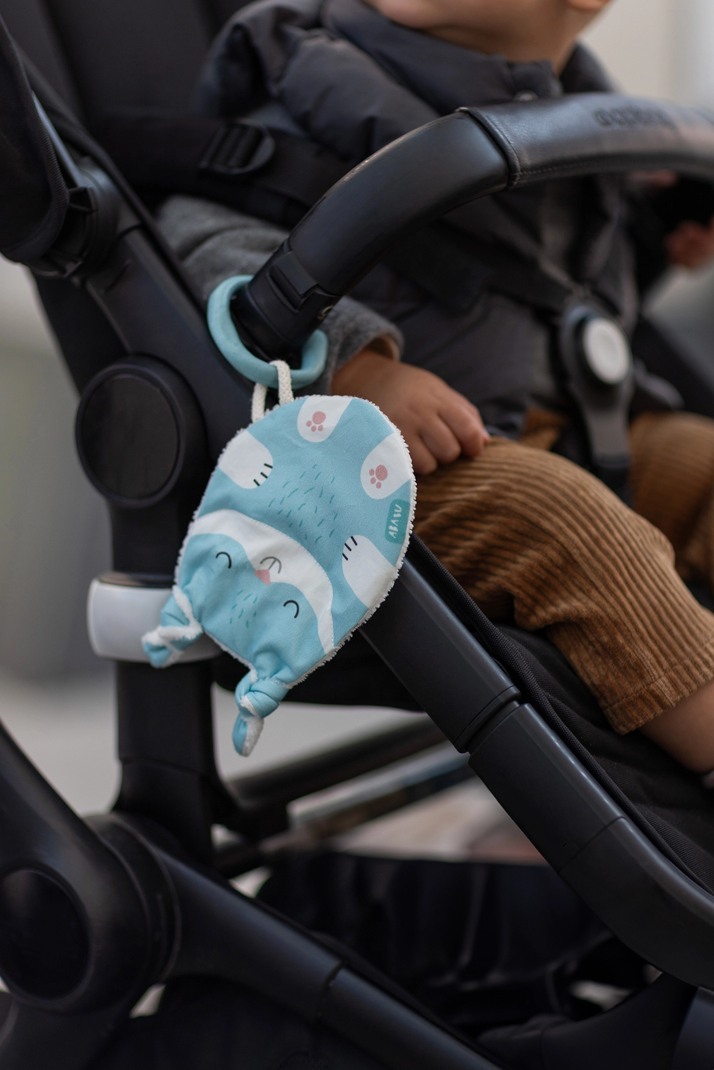 El mantenimiento del juguete es sencillo. Antes del primer uso, recomendamos lavarlo sin la anilla. Si la anilla se desgasta, puedes reemplazarla fácilmente por una nueva. No planchar ni secar en secadora. Pequeños defectos del estampado son comunes y no se consideran fallos.