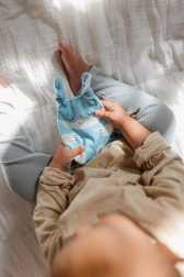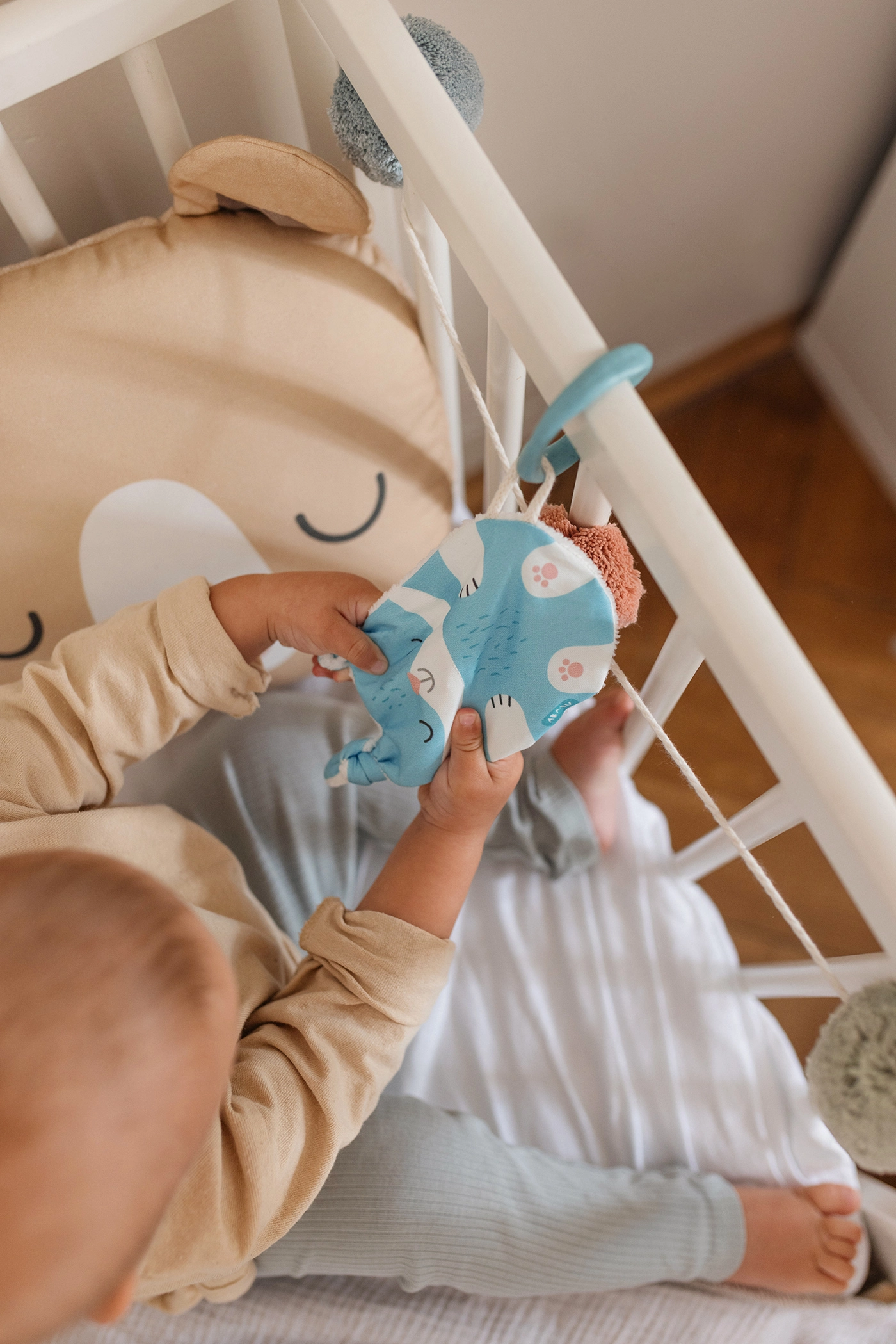 El juguete colgante Conejito aporta alegría y diversión segura para los más pequeños. Diseñado por la autora Jitka de Ababu, este juguete ofrece un estampado de autor único y está hecho con materiales de calidad y costuras precisas.