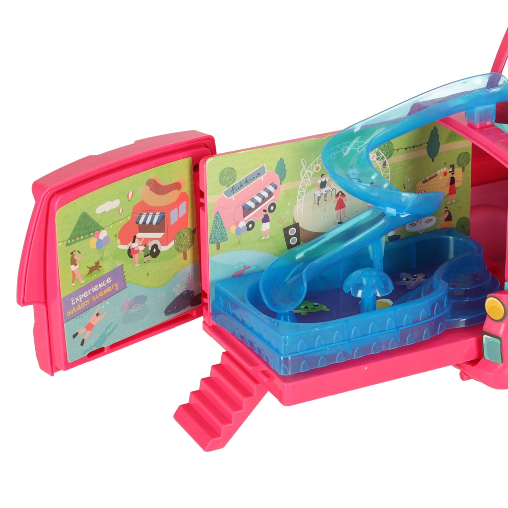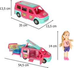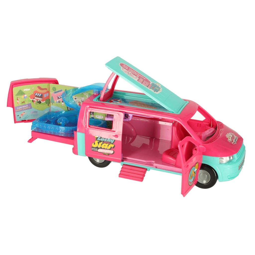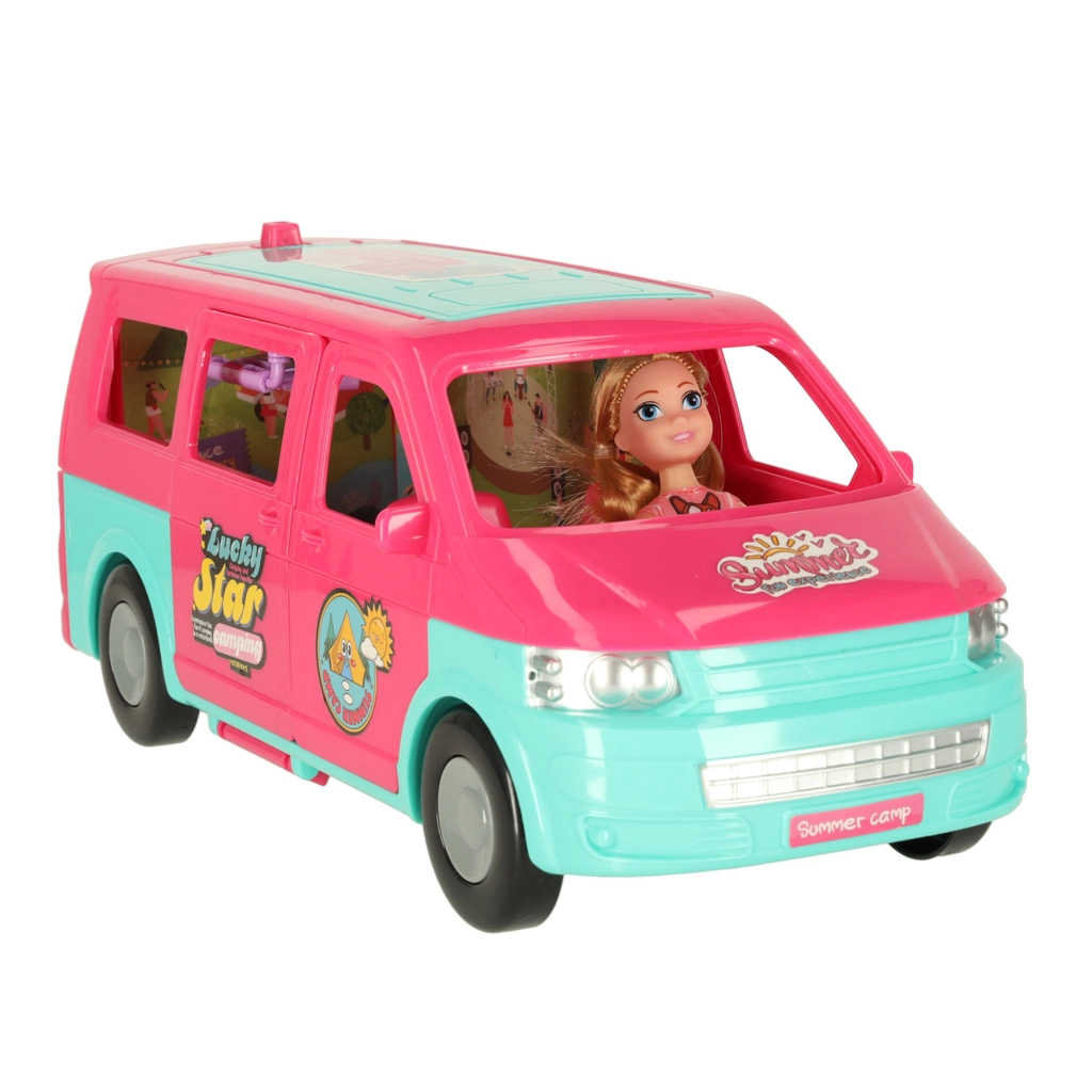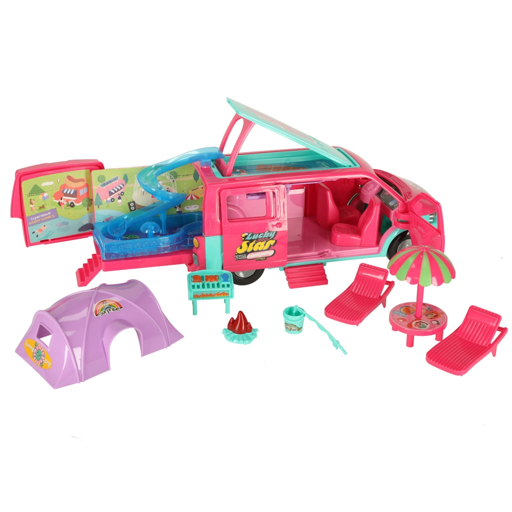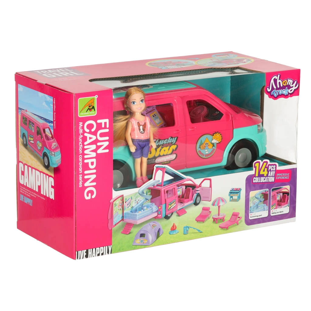 Lleva a tus muñecas a grandes aventuras con esta caravana de camping, que proporciona el escenario perfecto para juegos divertidos. El set incluye todos los accesorios necesarios para relajarse y jugar en la playa o en la naturaleza: