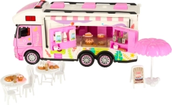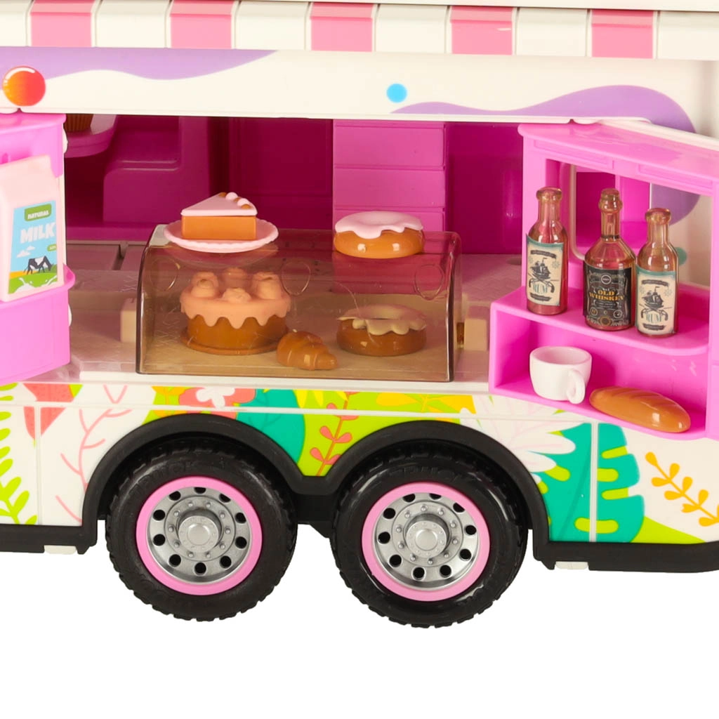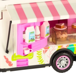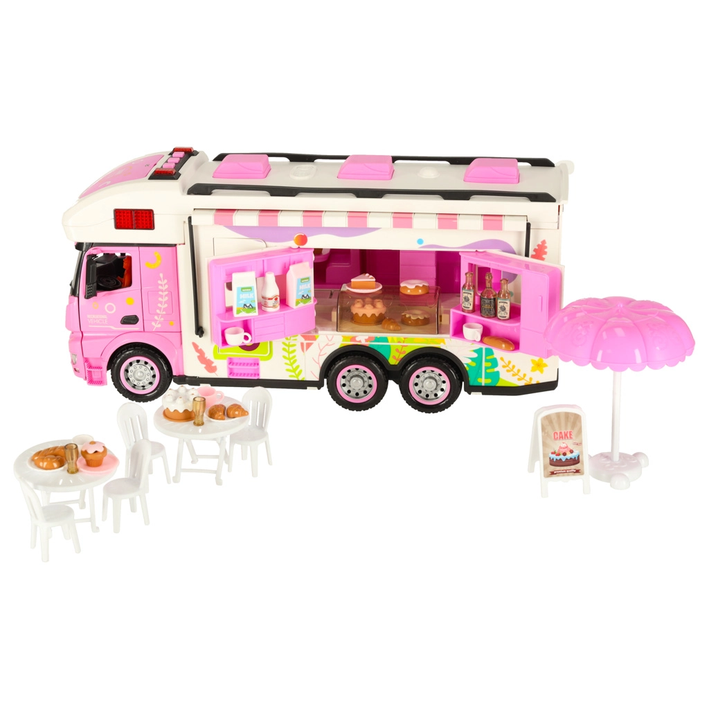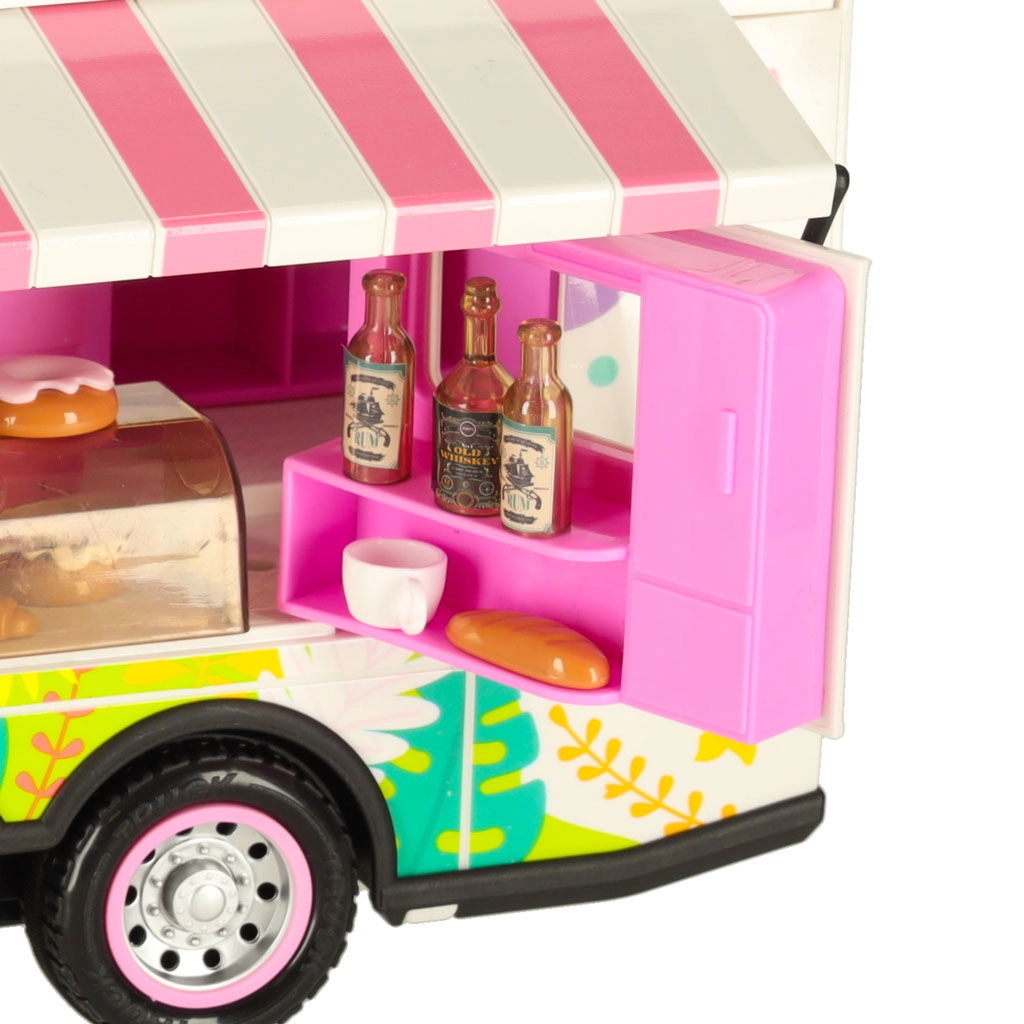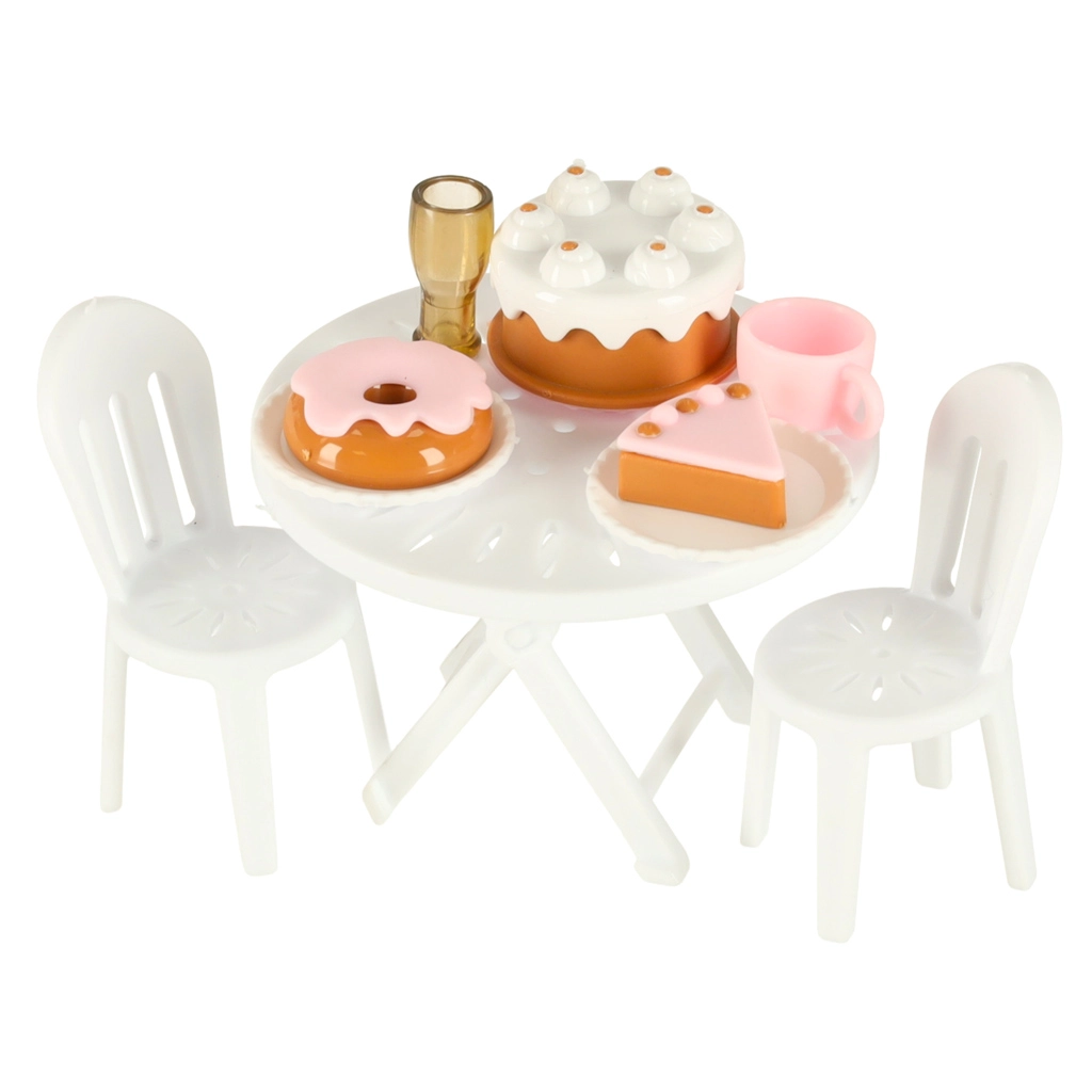 Este set incluye varios accesorios que permiten a los niños simular un campamento real. Incluye una mesa, sillas, mini vajilla y pegatinas que aportan un toque personal. Los niños también pueden montar un cartel publicitario y colocar una sombrilla de jardín, lo que ofrece aún más posibilidades de juego.