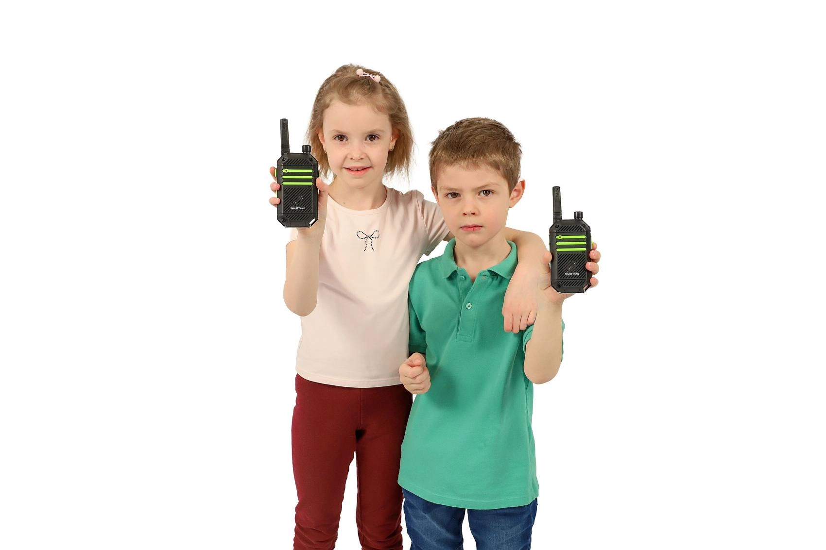 - Excelente alcance: Con un alcance de hasta 80 metros en espacios abiertos, los niños pueden mantenerse en contacto casi en cualquier lugar.