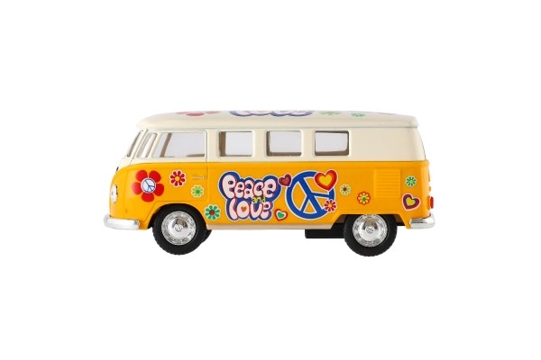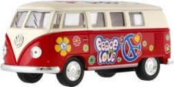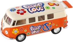 Sumérgete en el mundo de los años 60 con este fielmente elaborado modelo de autobús Volkswagen, ideal tanto para pequeños coleccionistas como para entusiastas del juego. Este modelo está fabricado con metal y plástico de calidad y ofrece una estructura sólida junto con un encanto histórico. El juguete es apto para niños a partir de 3 años.