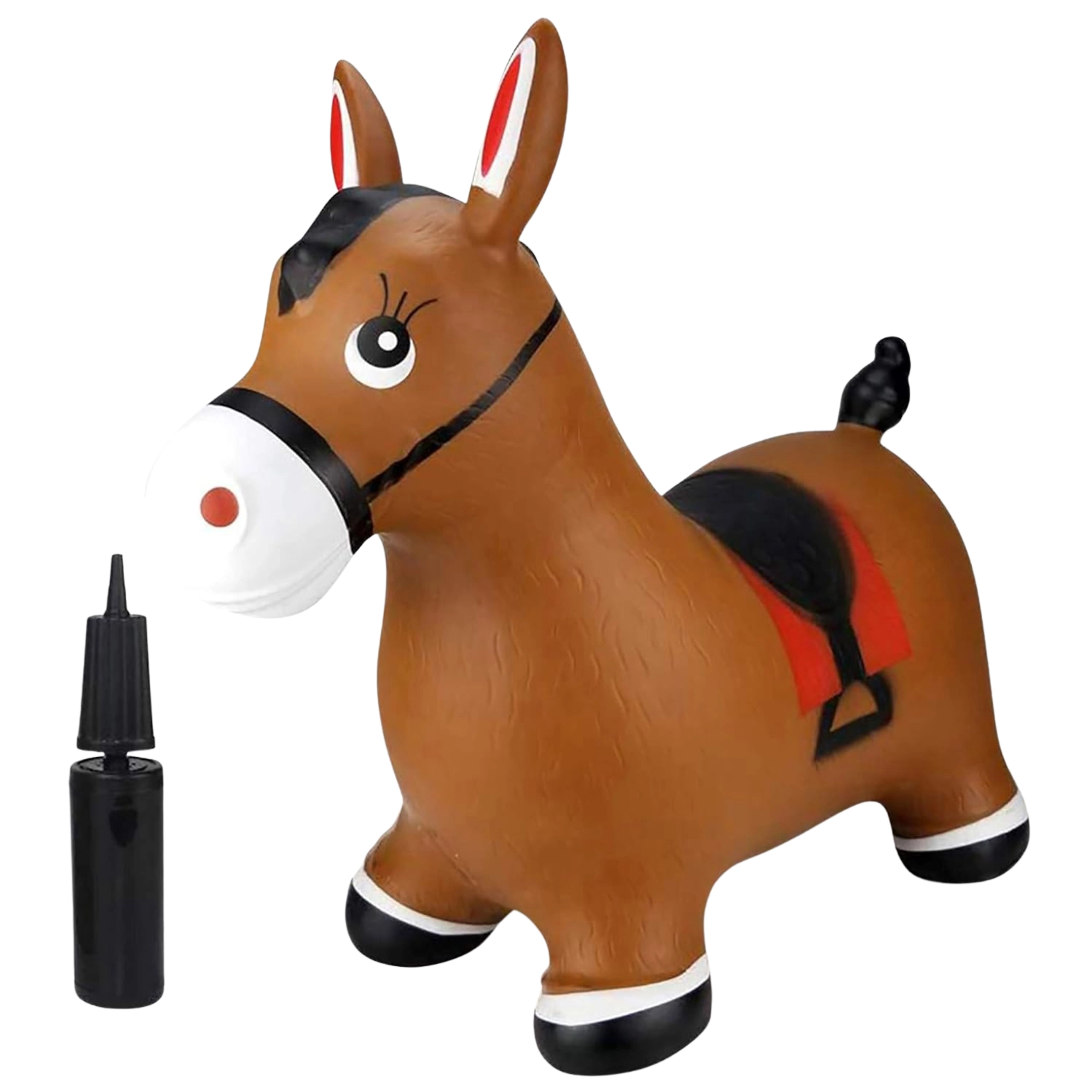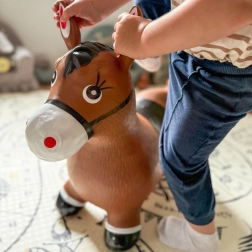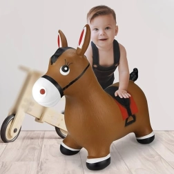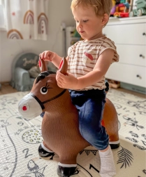 El diseño claro del adorable caballito marrón con sillín motiva al juego y estimula la imaginación. La carga máxima es de 45 kg y las presiones recomendadas de 0,3–0,4 bar garantizan la elasticidad adecuada para un salto cómodo. El paquete incluye una práctica bomba, para que la diversión empiece justo al abrirlo.