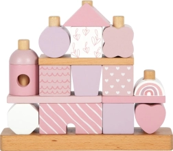 Esta hermosa casita con piezas de madera encantará a cualquier pequeño constructor. Los suaves tonos pastel junto con los elementos naturales aportan estética, y la diversidad de formas y patrones permite una variabilidad de juego infinita. Gracias a los bordes redondeados, es adecuada incluso para los más pequeños y contribuye al desarrollo de su motricidad fina y la coordinación mano-ojo.