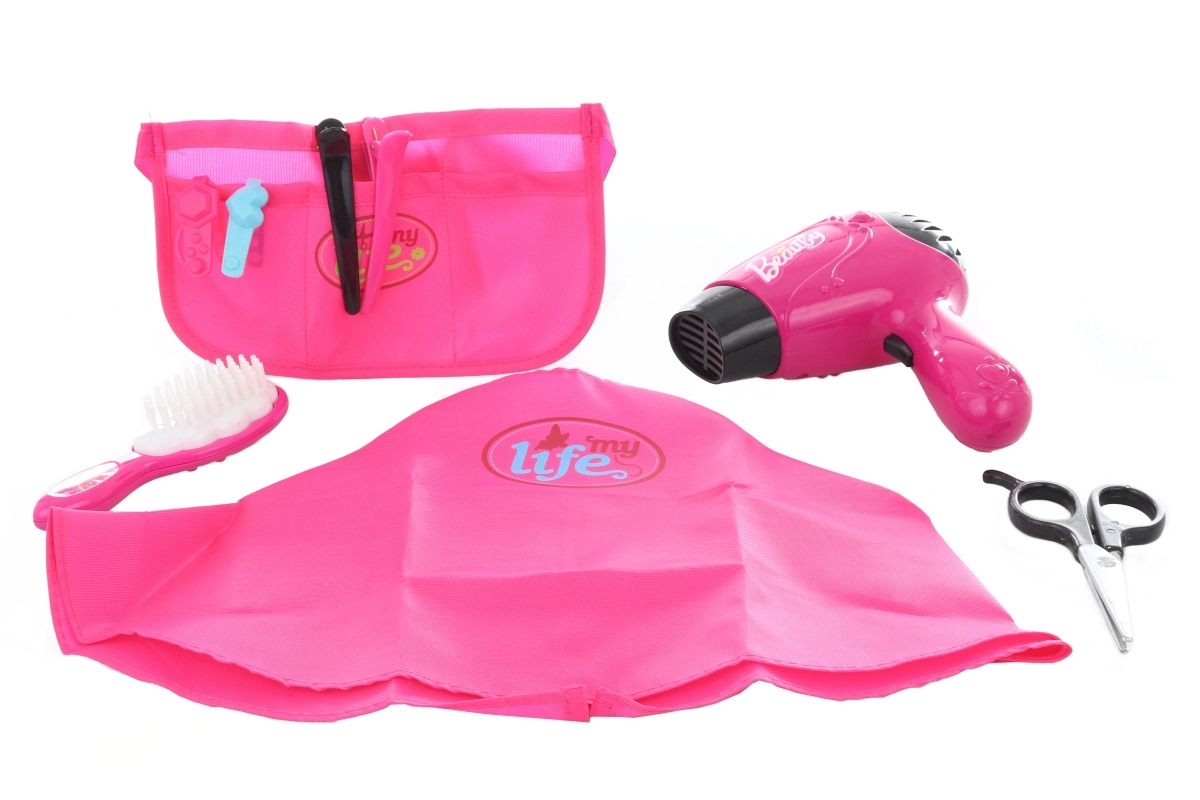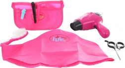 Elegante set de peluquería para pequeñas estrellas del salón que ofrece todo lo necesario para peinados creativos. Incluye un secador funcional a pilas, tijeras, cepillo, clips, pinzas, capa de corte y organizador. Juguete ideal para desarrollar la imaginación y la motricidad fina de los niños a partir de 3 años. Accesorios de plástico seguros, manejo sencillo y dimensiones compactas para jugar en casa o de viaje.