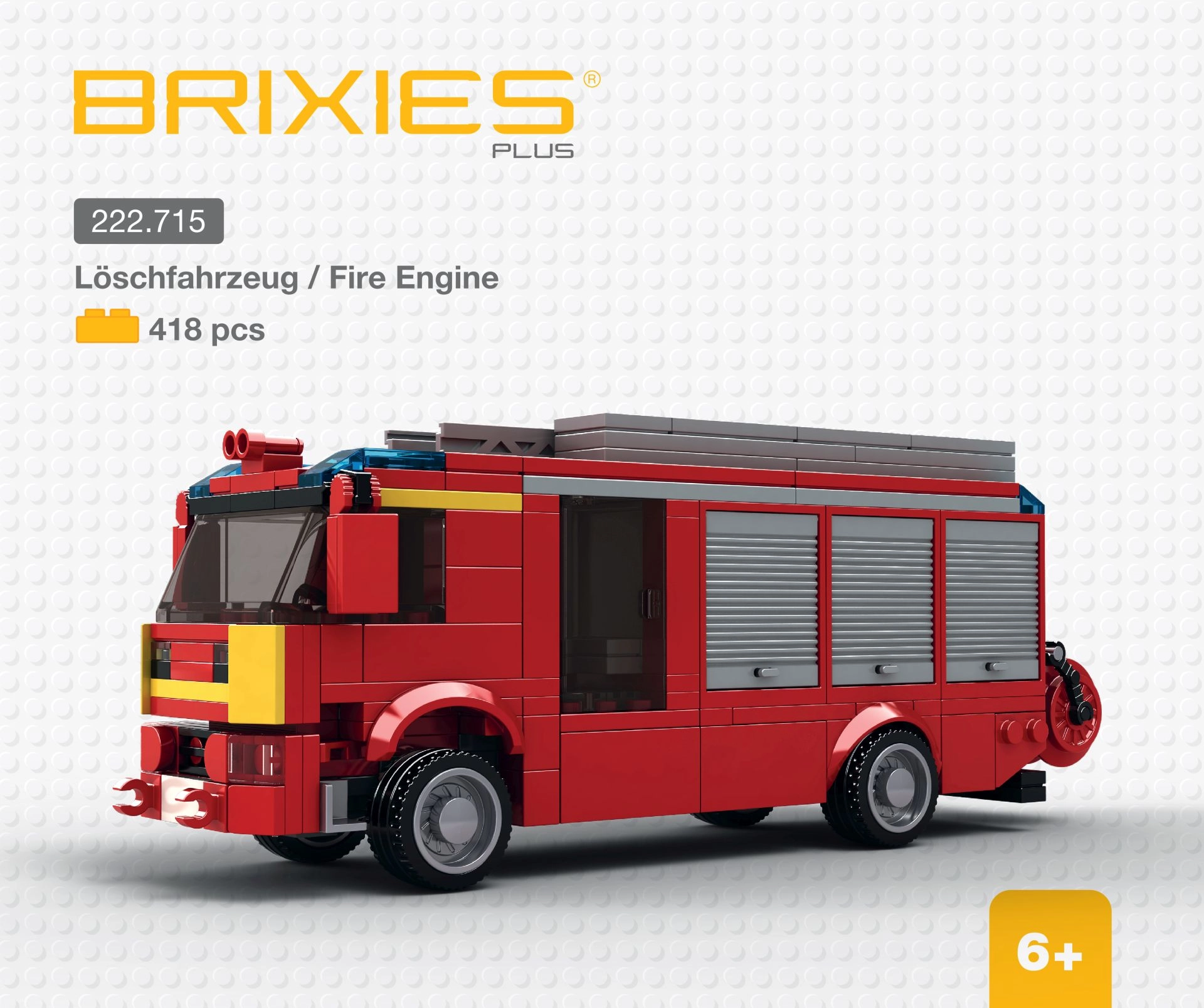 El set Brixies Plus Camión de Bomberos permite construir un modelo detallado de camión de bomberos. Con unas dimensiones totales de 21,6 x 8,3 x 7 cm, ofrece detalles auténticos y una fabricación de calidad.