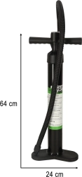 Gracias a sus dimensiones compactas (64 cm x 24 cm), la bomba es fácil de transportar y almacenar. La manguera larga (130 cm) garantiza un uso cómodo. El producto se entrega en un embalaje práctico.