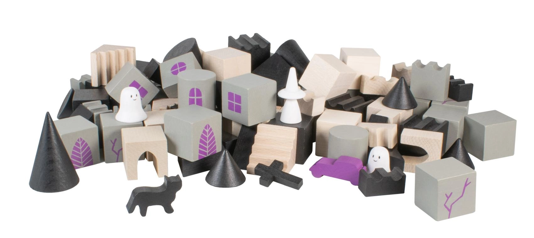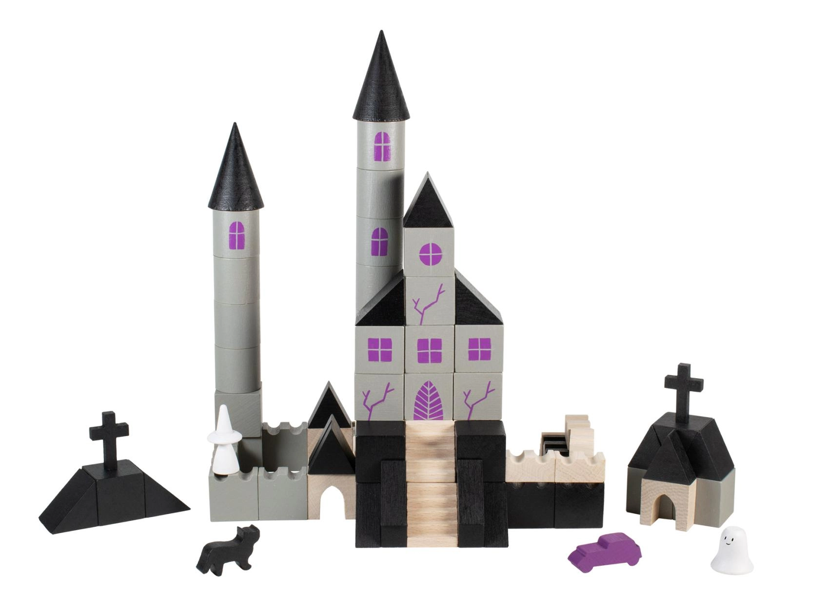 El juego de construcción de madera Castillo Embrujado aporta un toque de magia y misterio al mundo infantil. Cada una de las 97 piezas está impresa y tiene diferentes formas y tamaños, lo que permite infinitas posibilidades a la hora de construir el castillo.