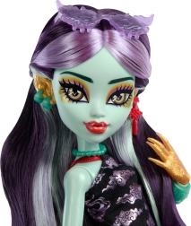 Jinafire Long está lista para cualquier aventura con mochila, gafas de sol, teléfono y “yogur bebible”, que también forman parte del paquete. Descubre toda la colección Monster High y sumérgete en un mundo de moda e historias fantásticas. Se vende por separado según disponibilidad.