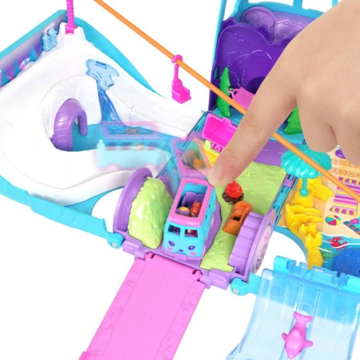 - Sube al pequeño vehículo para ir de la playa a la pista de esquí y volver. Otros micro vehículos de Polly Pocket son compatibles con este set (se venden por separado).