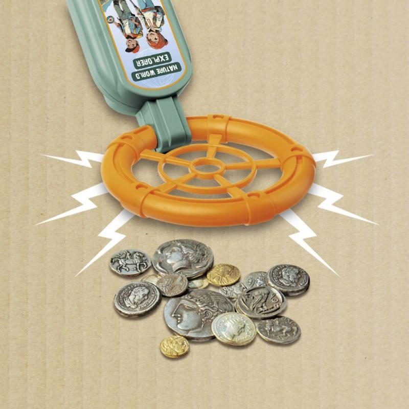 Este detector de metales ligero y fácil de manejar es ideal para dar los primeros pasos en el mundo de la búsqueda de tesoros. La respuesta sonora y luminosa avisa de inmediato cuando se encuentran objetos metálicos, por lo que los niños comprenden rápidamente cómo funciona el detector.