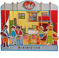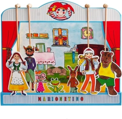 El set está hecho de cartón encuadernado de alta calidad, madera y cartón laminado, lo que garantiza su resistencia y larga vida útil. Ideal tanto para niños pequeños que están empezando a descubrir el arte teatral como para la diversión de toda la familia.
