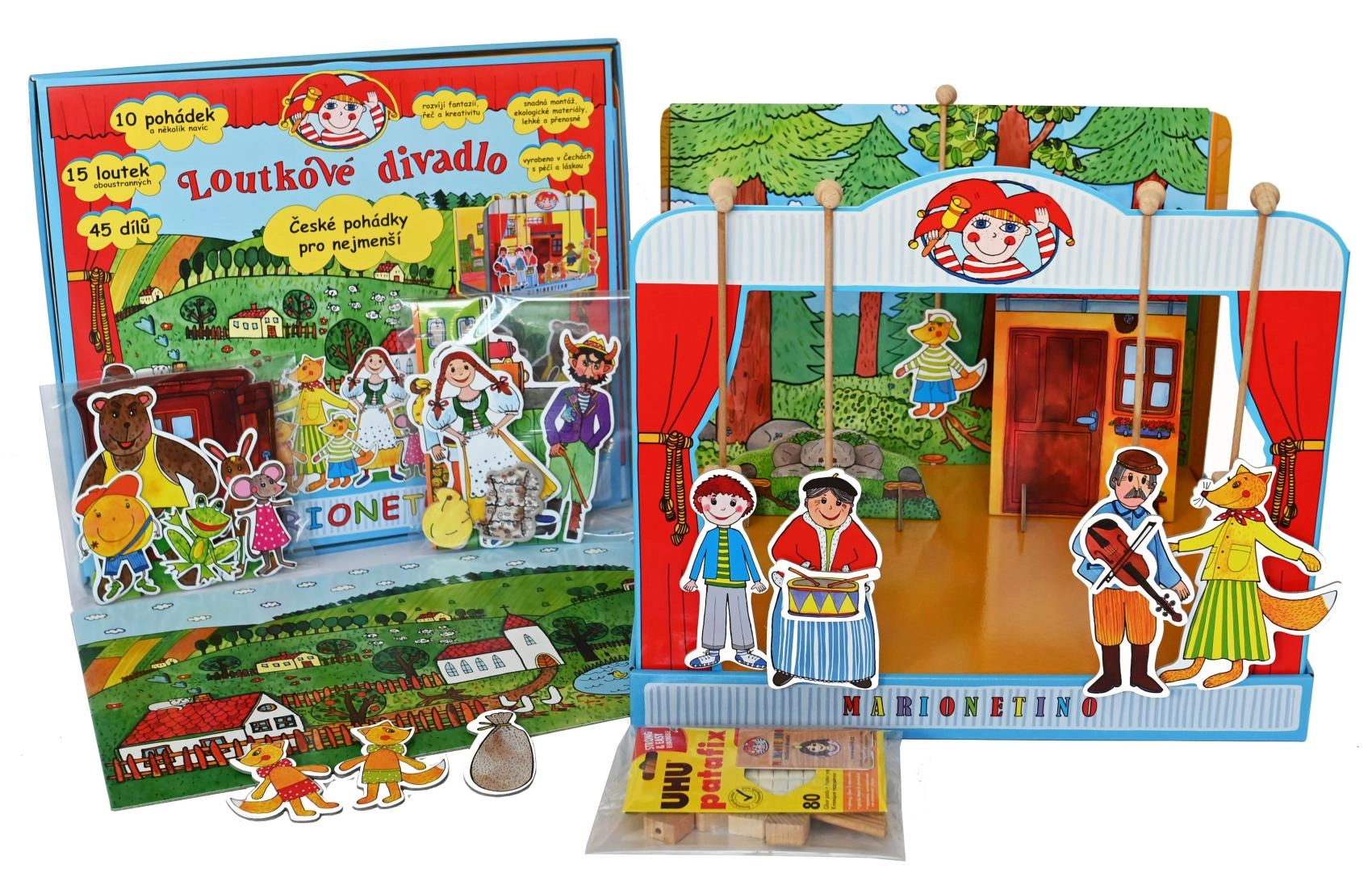 Teatro de marionetas Cuentos checos para niños es un precioso set adecuado para todos los amantes de los cuentos, pequeños y grandes. Contiene todo lo necesario para un juego divertido y creativo.