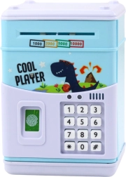 Esta caja fuerte electrónica es un juguete ideal para niños a partir de 5 años, que combina un diseño moderno con un colorido motivo de dinosaurio. Los niños pueden introducir el código correcto y “escanear el dedo” con la pegatina de simulación, lo que estimula su imaginación y añade realismo al juego. La caja fuerte absorbe automáticamente los billetes y permite la inserción manual de monedas, lo que hace el juego más entretenido.