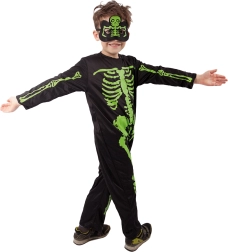 Este espeluznante disfraz de carnaval con motivo de esqueleto es la elección ideal para cualquier pequeño amante de lo terrorífico. ¡Perfecto para carnavales y espectáculos infantiles!