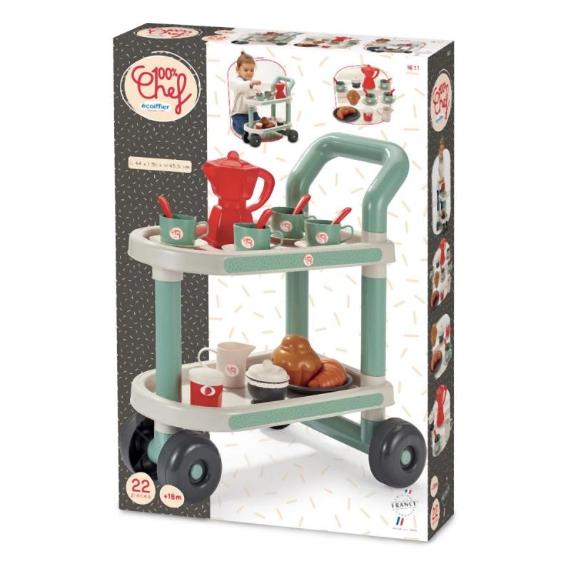 Presentamos el carrito de desayuno con accesorios, ideal para pequeños baristas y panaderos. Este set incluye un total de 22 piezas que proporcionan todo lo necesario para un tentempié matutino perfecto. El carrito tiene ruedas, lo que garantiza un fácil traslado por la habitación o el jardín.