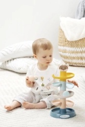 Abrick torre con pelotas es el juguete ideal para los niños pequeños, que desarrolla la motricidad y la coordinación. Este set en colores suaves con un osito en la cima aporta horas de diversión.