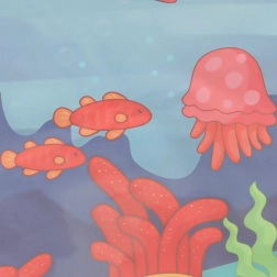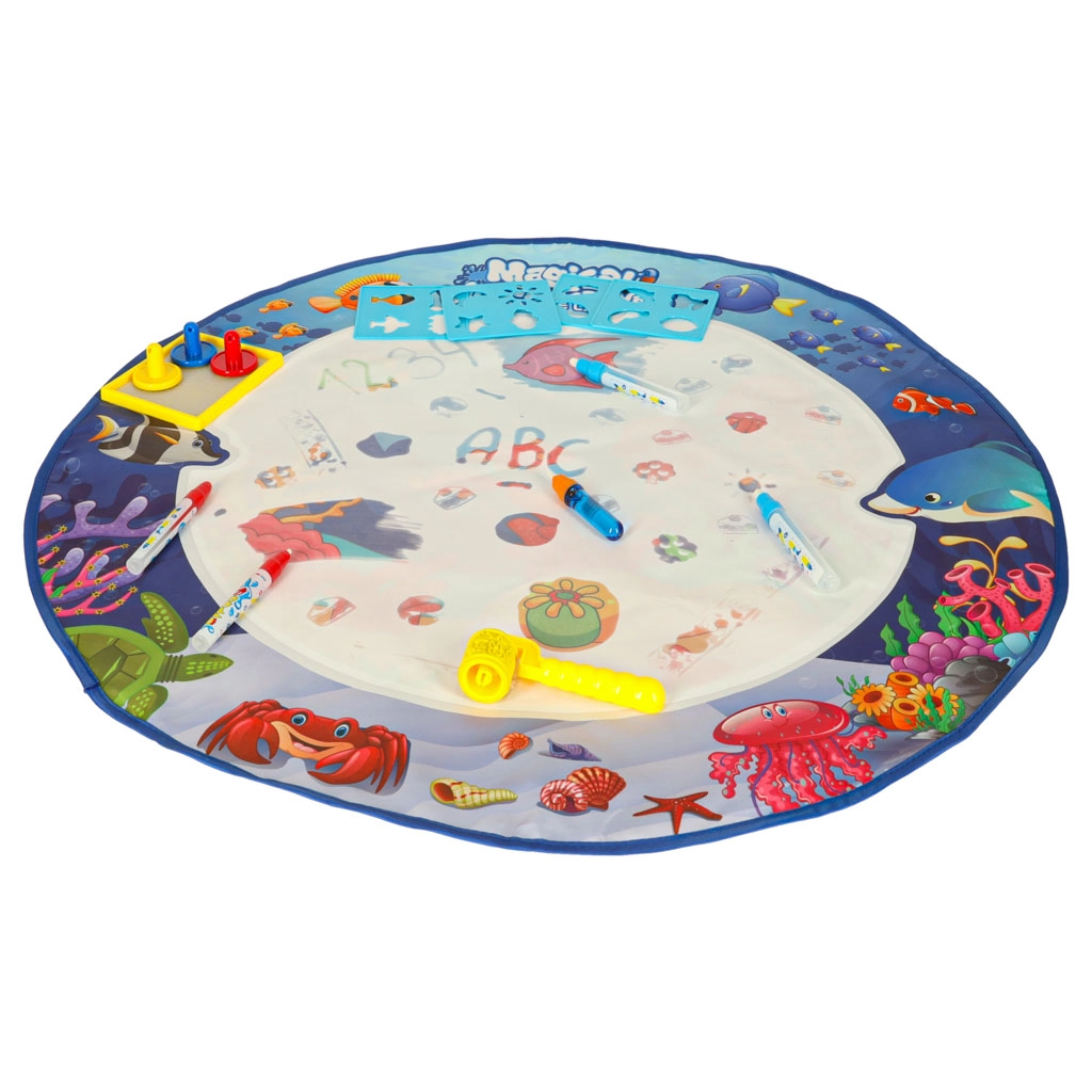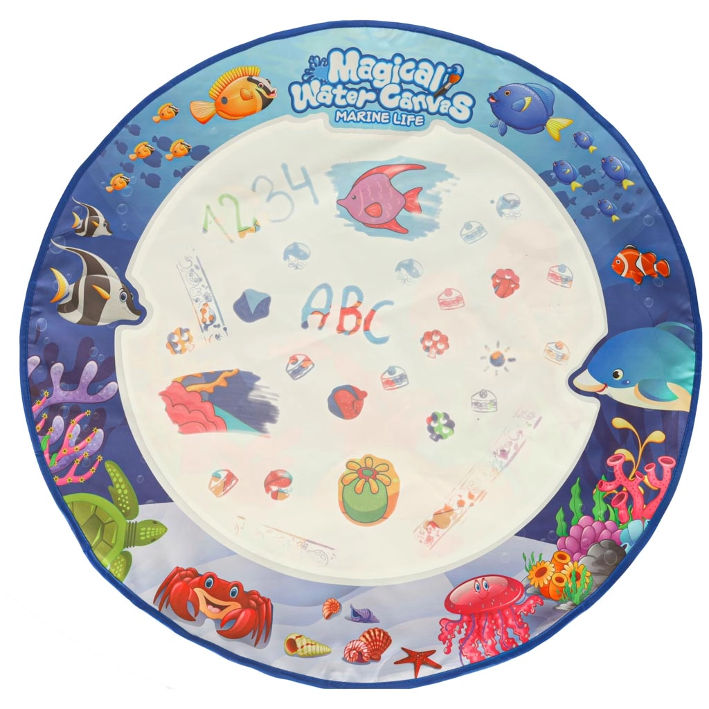 La alfombra de dibujo con agua «Mundo acuático» ofrece diversión y aprendizaje para todos los pequeños artistas. Los niños pueden sumergirse en el dibujo sin usar pinturas ni papel reales, lo que hace el juego seguro y limpio.