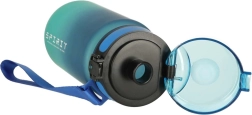 Botella deportiva con boquilla con capacidad de 600 ml en un atractivo color azul verdoso, es el compañero ideal para cualquier deportista. La botella está equipada con un asa cómoda y un ingenioso sistema de apertura.