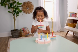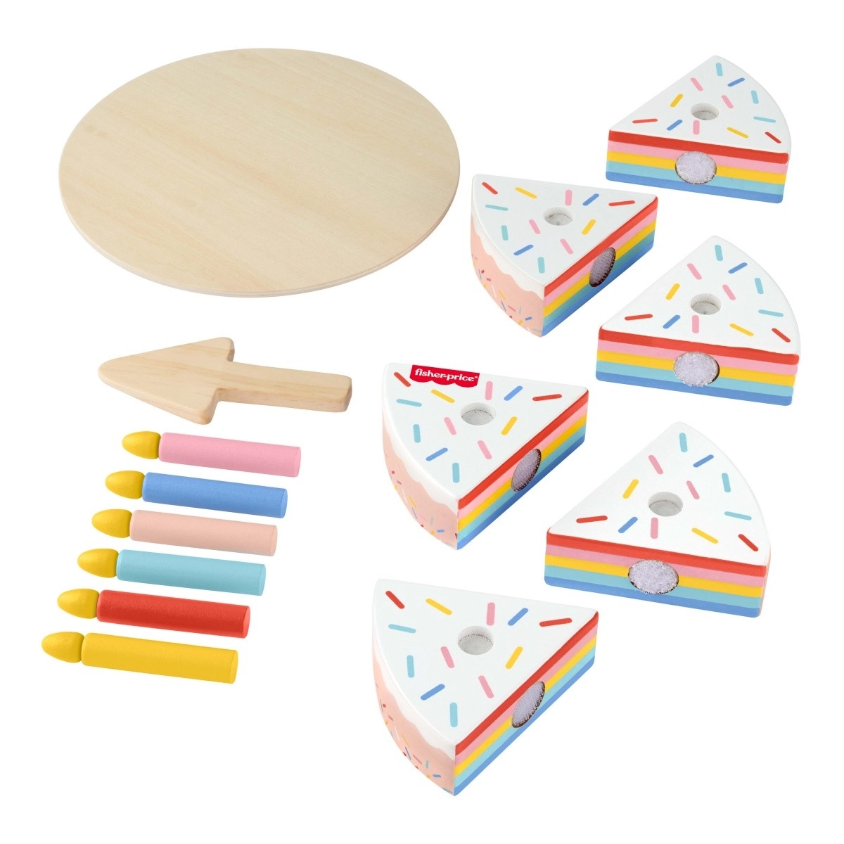 Haz que cada día sea una celebración con esta tarta de cumpleaños de madera de la marca Fisher-Price. El set incluye 6 porciones de tarta, 6 velas, una bandeja y un cuchillo para tarta, ofreciendo a los niños horas de diversión decorando, cortando y sirviendo.