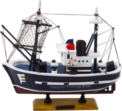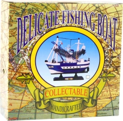 El modelo Flying Lady es una réplica decorativa de un barco pesquero clásico, inspirado en embarcaciones utilizadas para la pesca costera y de puerto. Presenta una superestructura característica, una alta torre del capitán, un solo mástil con jarcia y detalles técnicos que imitan radares y chimeneas, lo que le aporta un aspecto único y realista. Está fabricado en madera y acabado a mano, lo que aumenta su valor de coleccionista y su marcado carácter náutico.