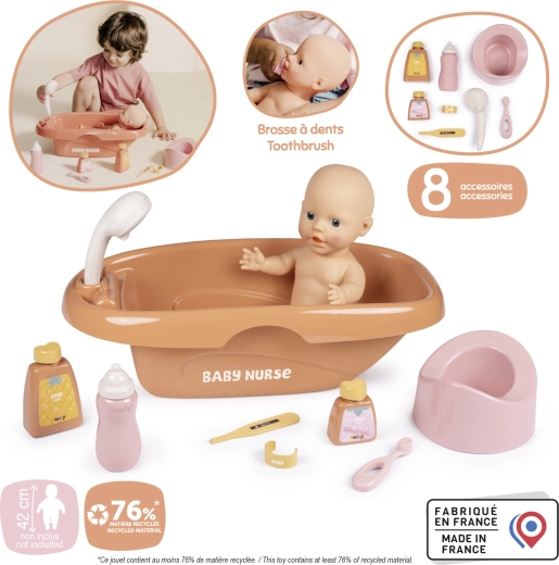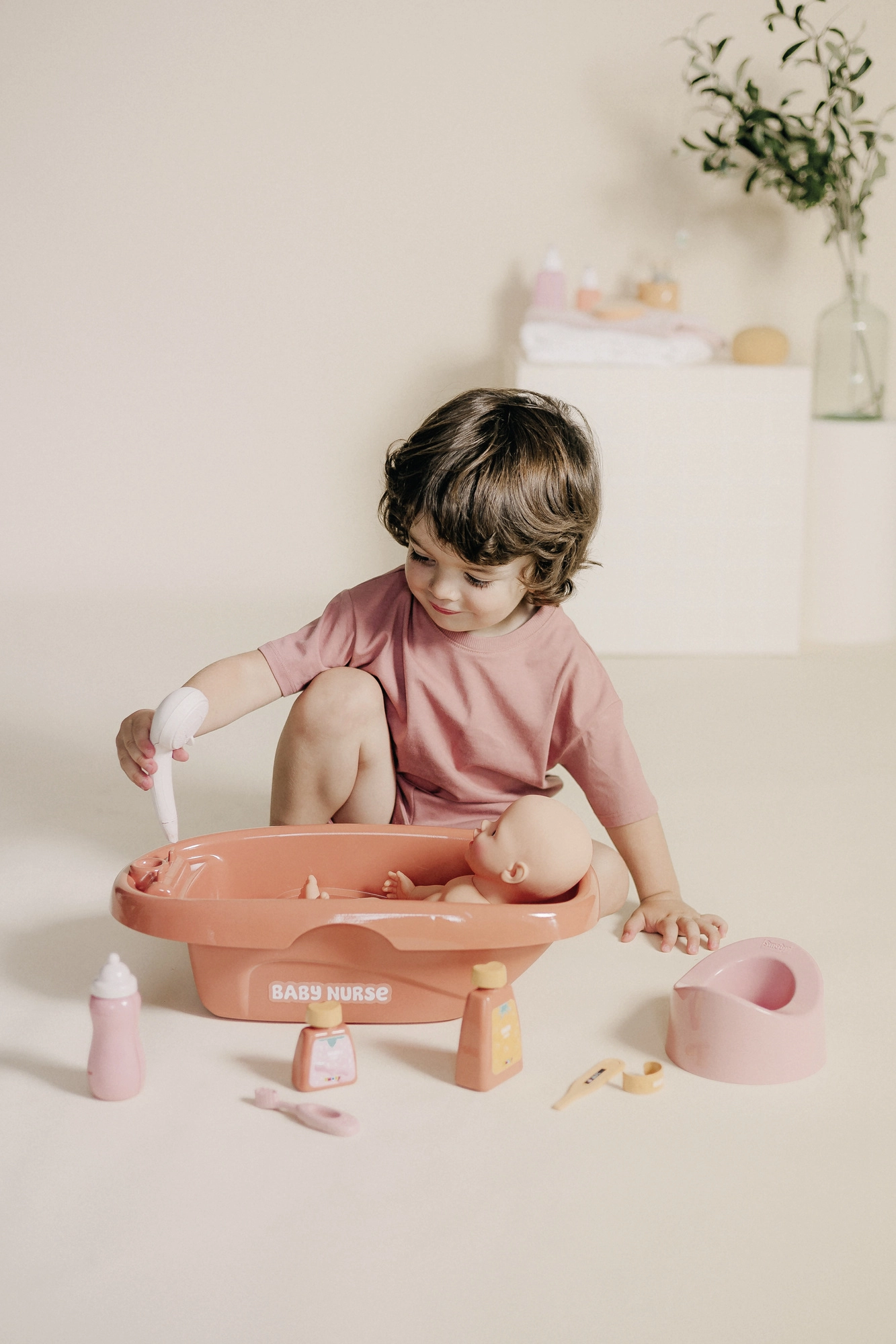 El set infantil SMOBY BABY NURSE ofrece un cuidado de muñeca realista: gran bañera con grifo y ducha, abundantes accesorios y acabado de calidad en plástico resistente. Los niños disfrutarán del role-play de baño y alimentación, fomentarán la empatía y la motricidad fina y, gracias a los numerosos complementos, aprenderán las bases del cuidado del bebé.