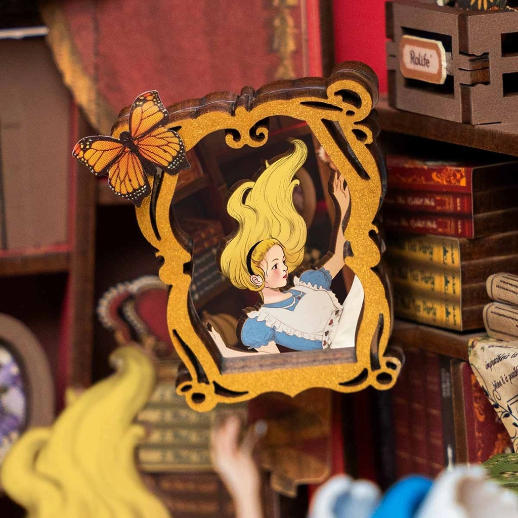 Lleva tus momentos de lectura al País de las Maravillas con este elegante sujetalibros. Su diorama detallado cautivará y encantará a cada visitante.