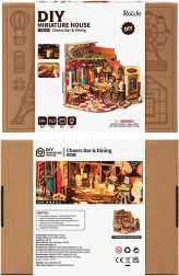 Disfruta del ambiente de un bar y bistró con estilo con la Miniatura de casa Cheers de RoboTime. Este modelo único ofrece decoraciones retro, iluminación íntima y la posibilidad de un montaje creativo, lo que lo convierte en un regalo ideal o una decoración para el interior.