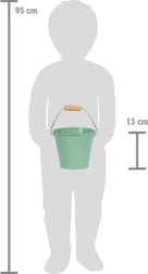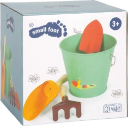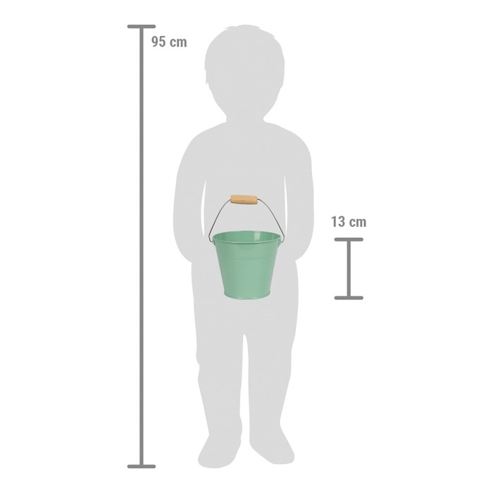 Las herramientas incluyen dos palas y un rastrillo, ideales para plantar, cavar o construir castillos de arena. El cubo metálico es el ayudante perfecto para transportar agua, arena o tierra. Los niños pueden llevar este set fácilmente a cualquier parte: al jardín, al arenero o a la playa.